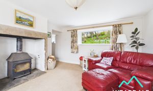 - Positioned to the Northern side of the property and accessed via one step up from the dining room - Well-proportioned lounge - Dual aspect with two double-glazed uPVC sash windows with deep wooden sills to the Western aspect, looking over the front of the property and providing magnificent views of the surrounding hillsides. There are two further double-glazed uPVC windows with deep wooden sills to the Eastern aspect, looking over the rear garden - Carpeted - Neutrally decorated - Traditional multi-fuel burner set on a flagstone hearth with stone surround - Built-in storage cupboard which houses the property’s oil Combi boiler - Central ceiling light fitting - Two radiators - Ample space for lounge furniture