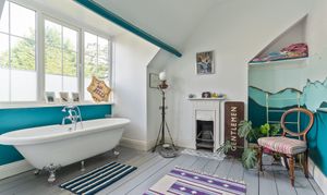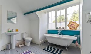 On the second floor, there are two further double bedrooms, providing additional spacious accommodation ideal for family members or guests. This floor is served by another stylish bathroom, again fitted with a feature roll-top bath, adding to the sense of luxury and comfort throughout the property.