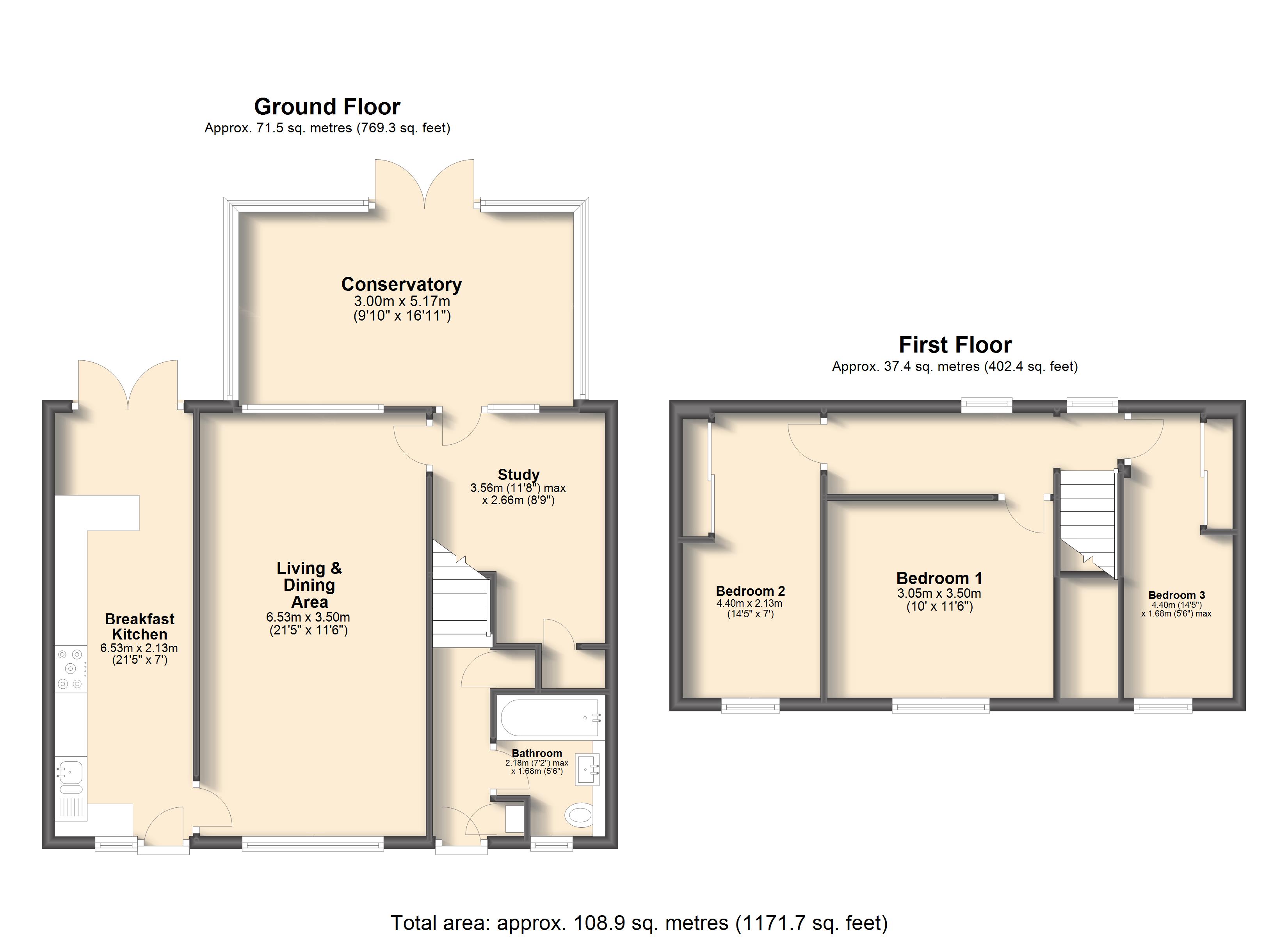 A generously sized conservatory extends the living space further, overlooking the enclosed rear garden and providing a tranquil spot to unwind throughout the year. Completing the ground floor is a flexible study, perfect for those working from home or seeking an additional playroom.