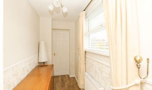 The first floor is home to three well-proportioned bedrooms, two of which feature fitted wardrobes, providing ample storage. Each room has been designed with a focus on comfort and practicality, making the home perfectly suited to family living. The modern family bathroom, fitted with a three-piece suite, complements the bedrooms and is conveniently located on the ground floor.