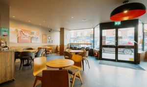 Internally the property provides a retail unit to the ground floor, which is currently occupied by a Costa franchise (lease runs until 2027) and is fitted out to the tenant’s own specification. It is configured to provide a large open plan retail/seating area which is fitted with linoleum floor coverings, plastered and painted walls with timber cladding to half height and a plastered and painted ceiling with a mixture of recessed spotlights and down lights. To the side of the main retail area is a fitted serving counter, and there is also some fitted bench seating to the rear and side of the main seating area. Behind the serving counter is a partitioned kitchen/staff area. This is fitted with linoleum floor coverings and uPVC clad walls and suspended ceiling tiles with recess fluorescent lighting. It provides some catering equipment, and we understand they belong to the tenant so do not form part of the sale. To the rear of this is a customer w/c and disabled w/c. A door to the rear of the seating area leads to a staff storage area which is of a very basic standard with linoleum floor tiles and plastered and painted walls and ceilings and provides both a goods lift and staircase to the first floor.