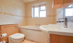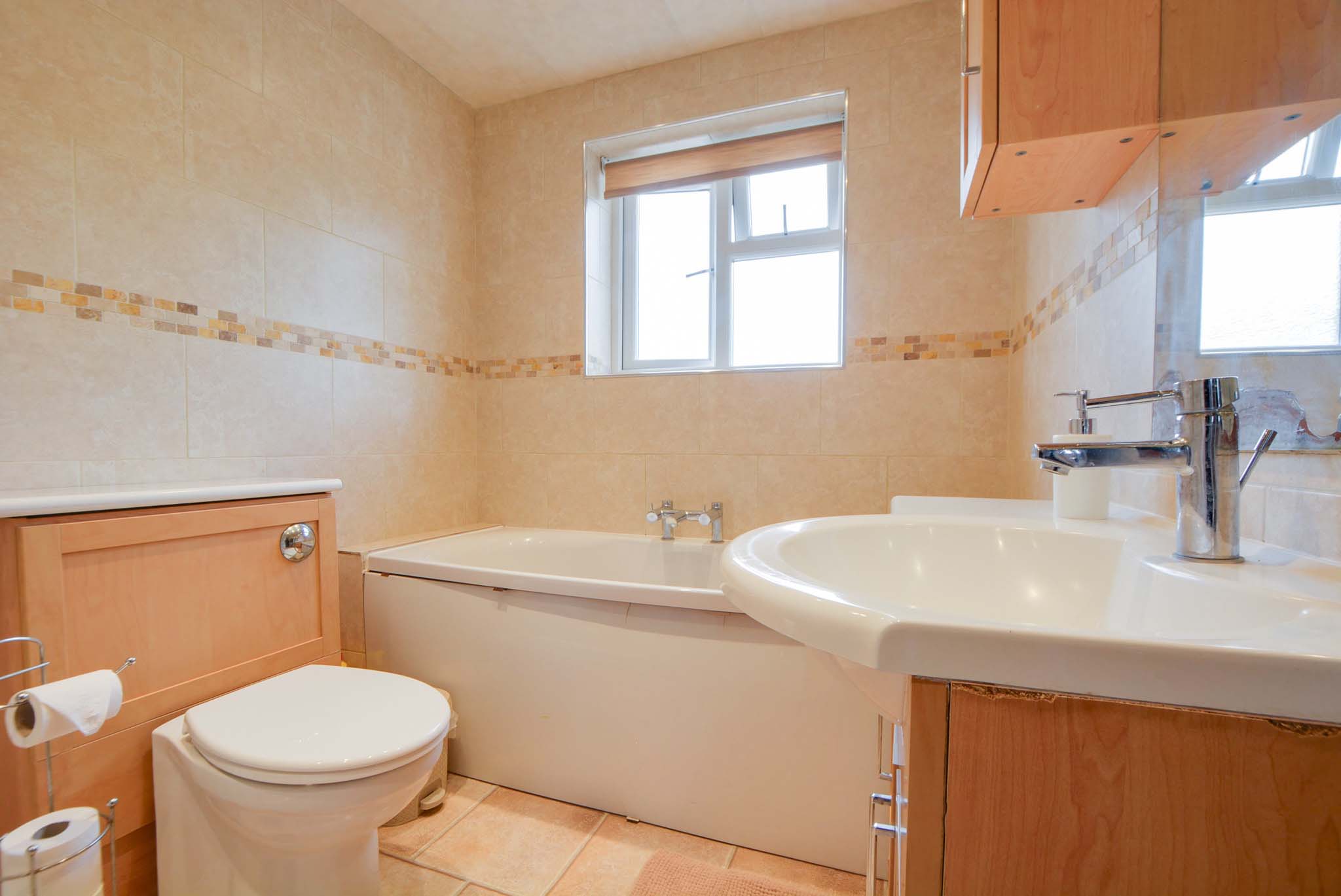 To the first floor, there are three bedrooms, including a principal bedroom with built-in wardrobes. The accommodation is served by a four-piece family bathroom comprising a bath, separate shower cubicle, WC and wash hand basin with storage.