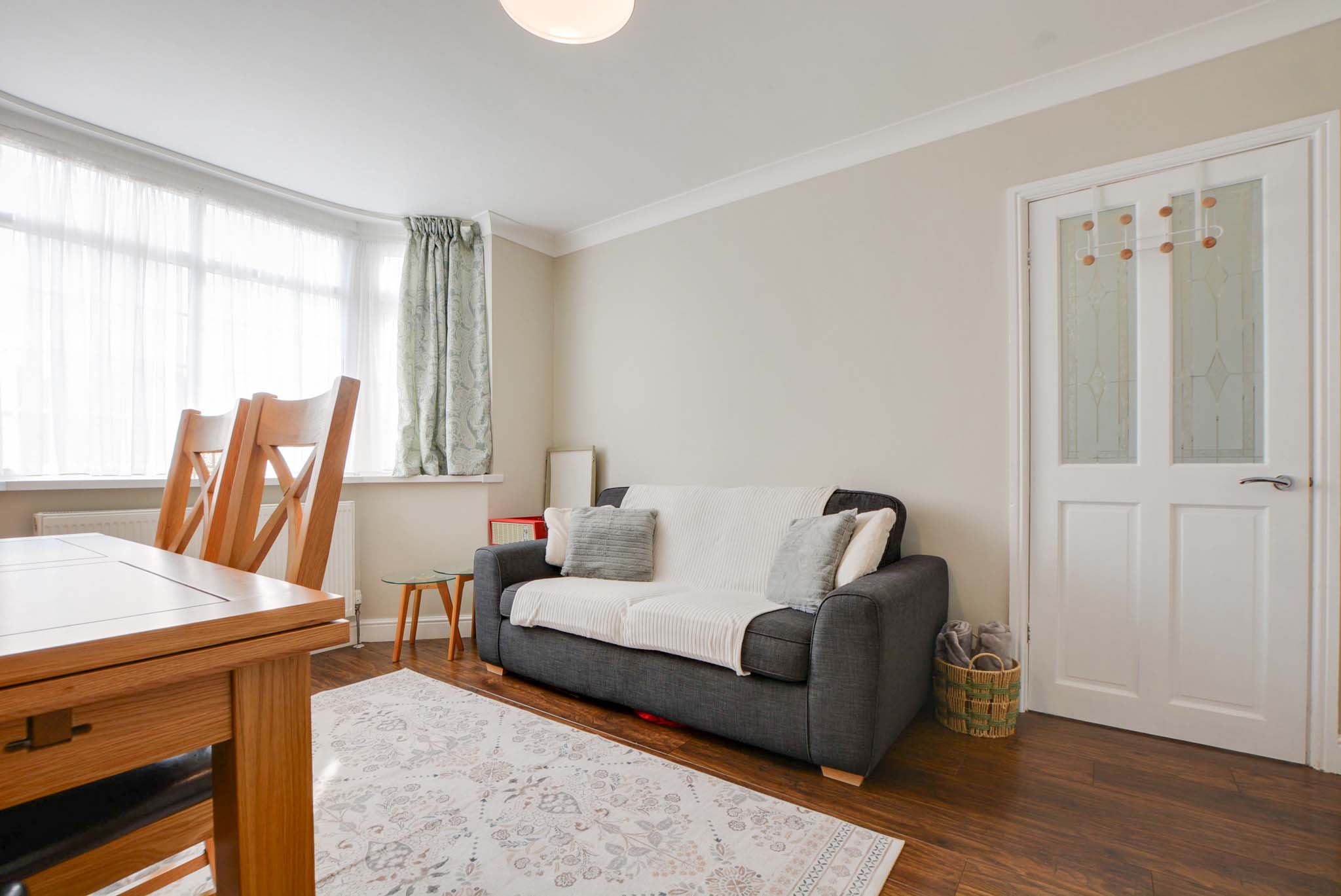 The property is approached via a low maintenance driveway and benefits from a double-glazed porch leading into the entrance hallway, where stairs rise to the first floor. To the front, the first reception room features a bay window allowing natural light, while the second reception room provides a spacious living area with French doors opening onto the rear garden.