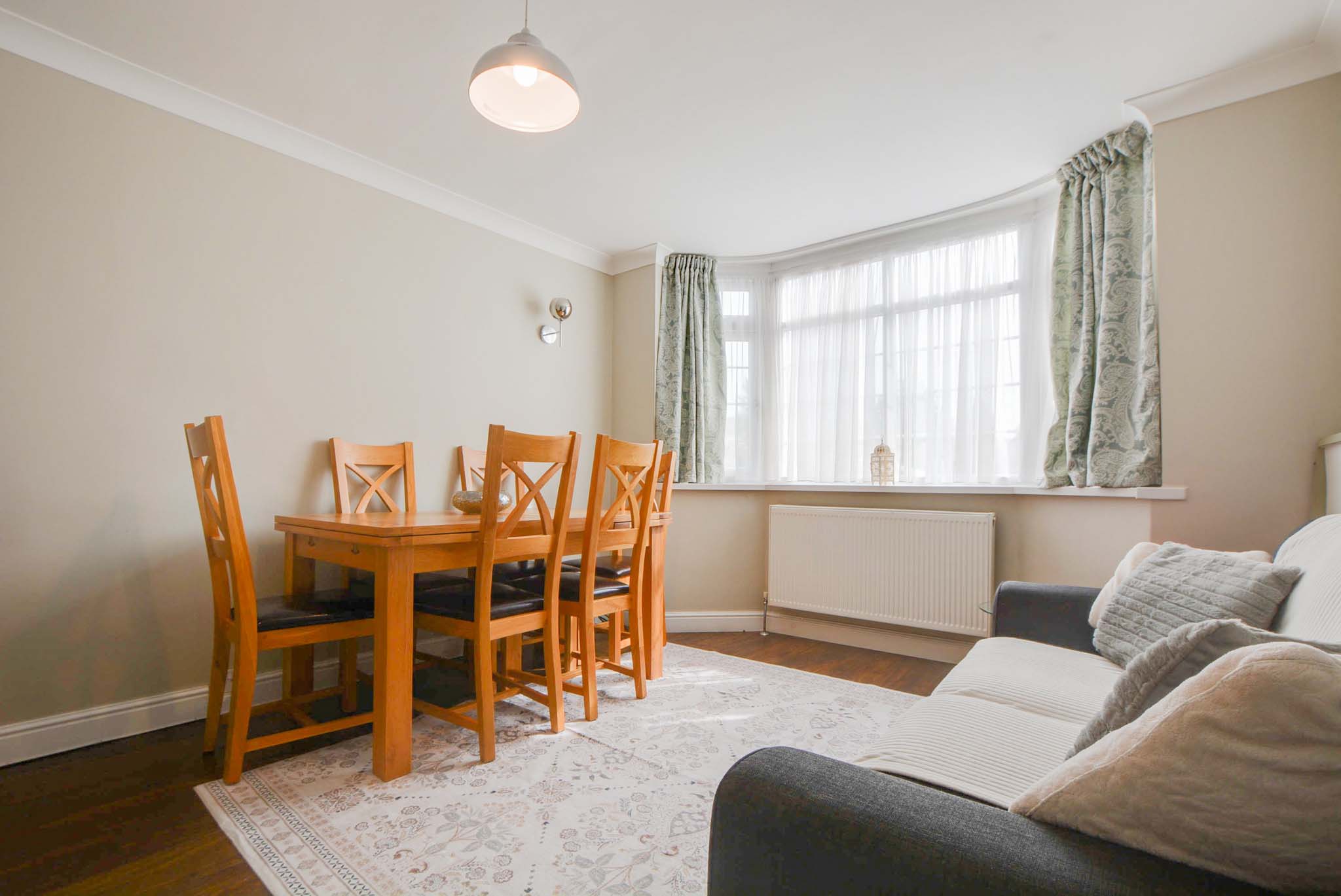 Features a bay window, coving, wood-effect flooring, and a radiator.