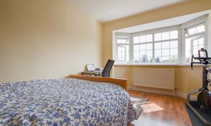 (measured into the bay). Featuring a front-facing window, wood-effect flooring, and a radiator.