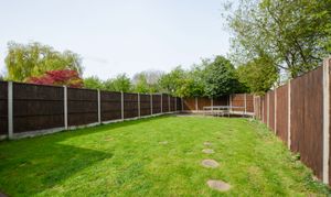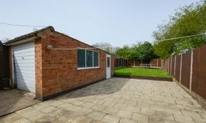 Externally, the rear garden offers a patio seating area leading to a lawn with fenced borders and access to a garage. To the front, the property benefits from off-road parking via a driveway.