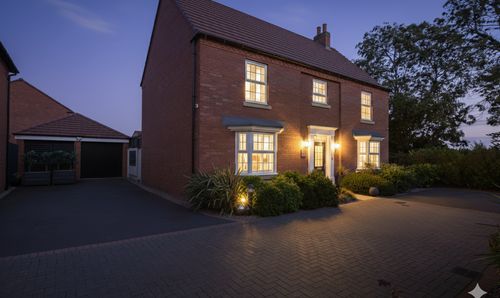 With paved seating area, flowerbeds and shrubs, outside WC, gated access to side entrance.