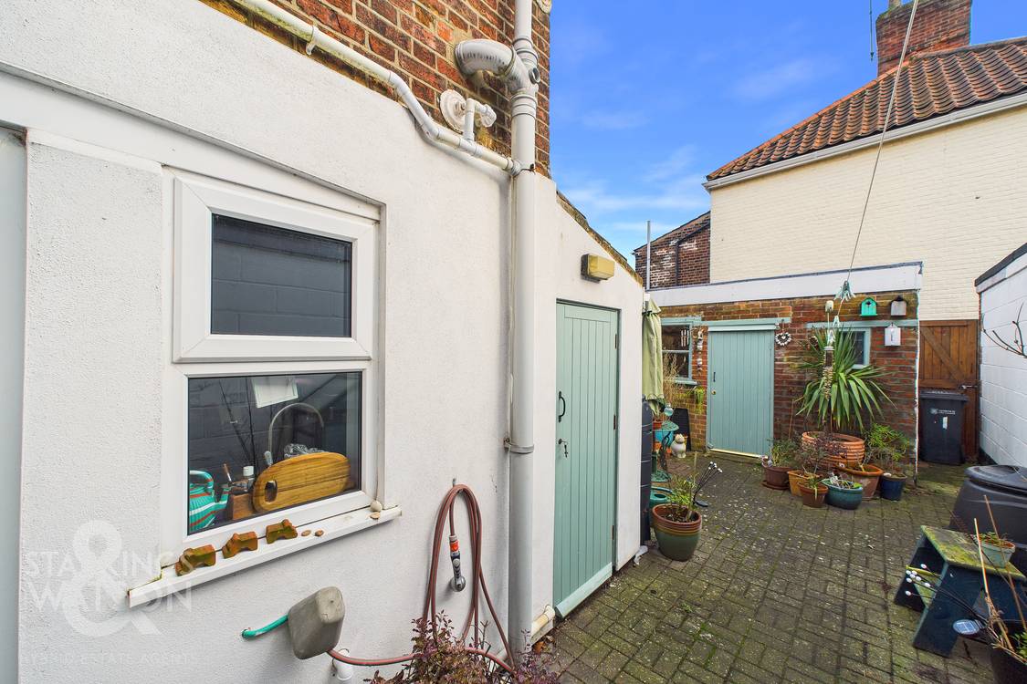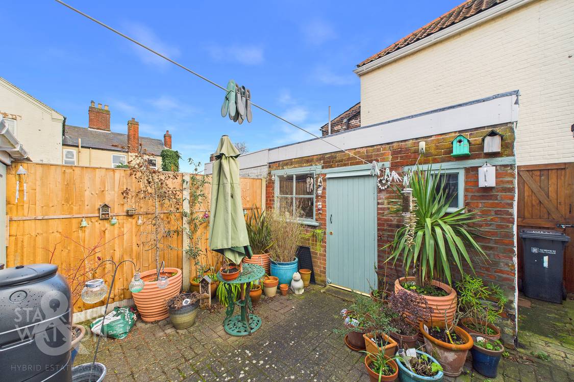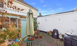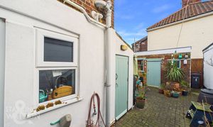 THE GREAT OUTDOORS Stepping outside, the private and fully enclosed garden is non-bisected, having been designed for a low maintenance predominantly laid to a brick weave patio, offering a versatile space for outdoor furniture and potted plants. New timber panel fencing has been installed along the dividing border, with a useful storage cupboard tucked away to the corner. Additionally, a substantial brick built shed at the end of the garden provides excellent external storage or offers the potential to be converted into a home studio. A passage alongside the shed leads to a wooden gate, providing convenient rear access to the adjacent road.