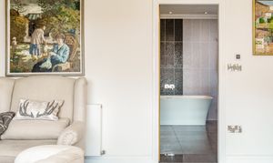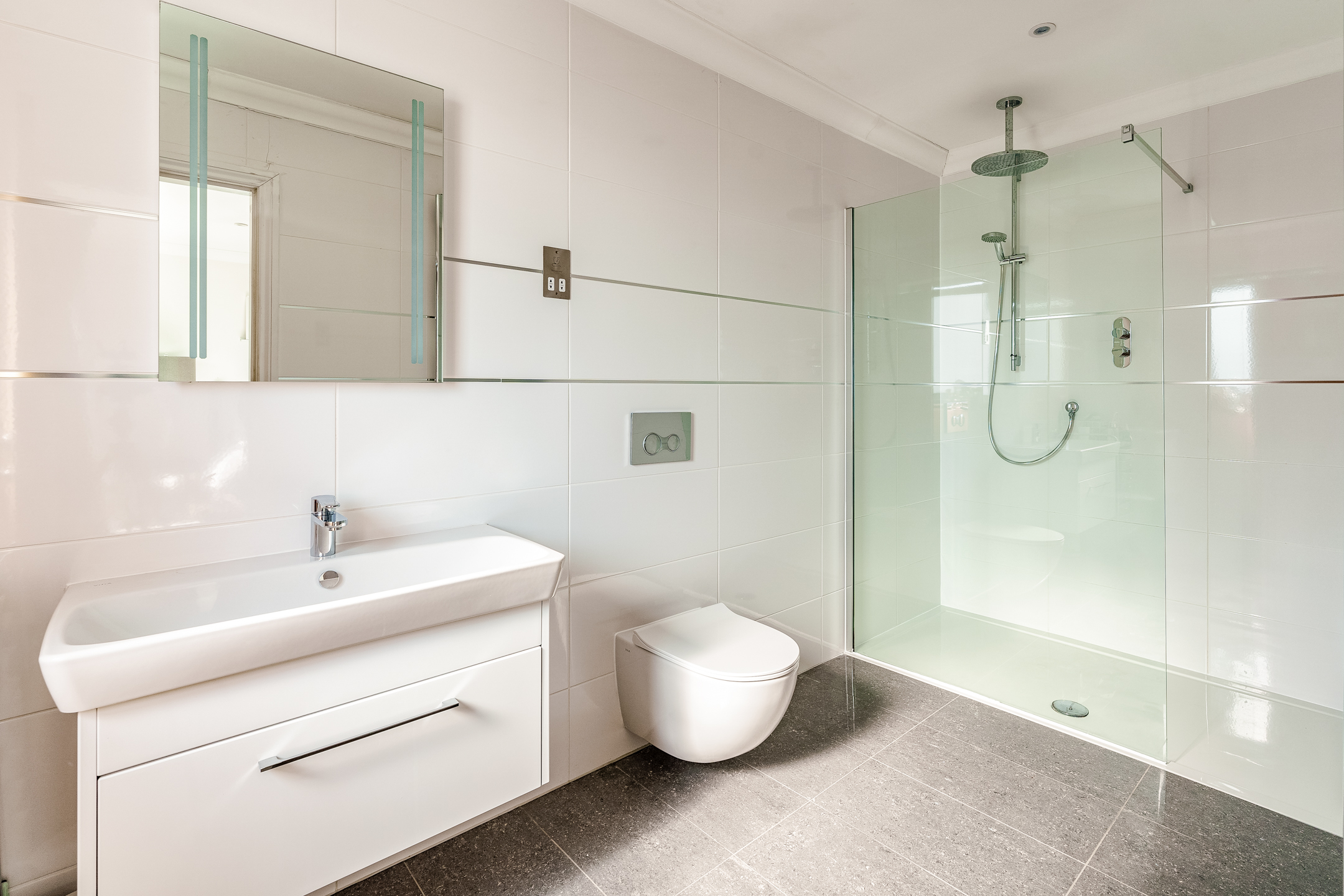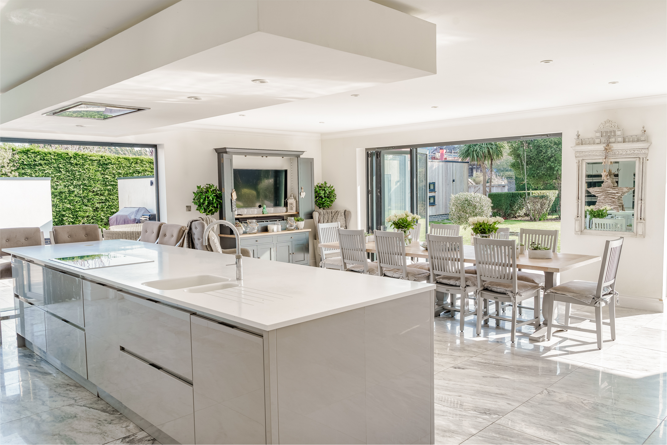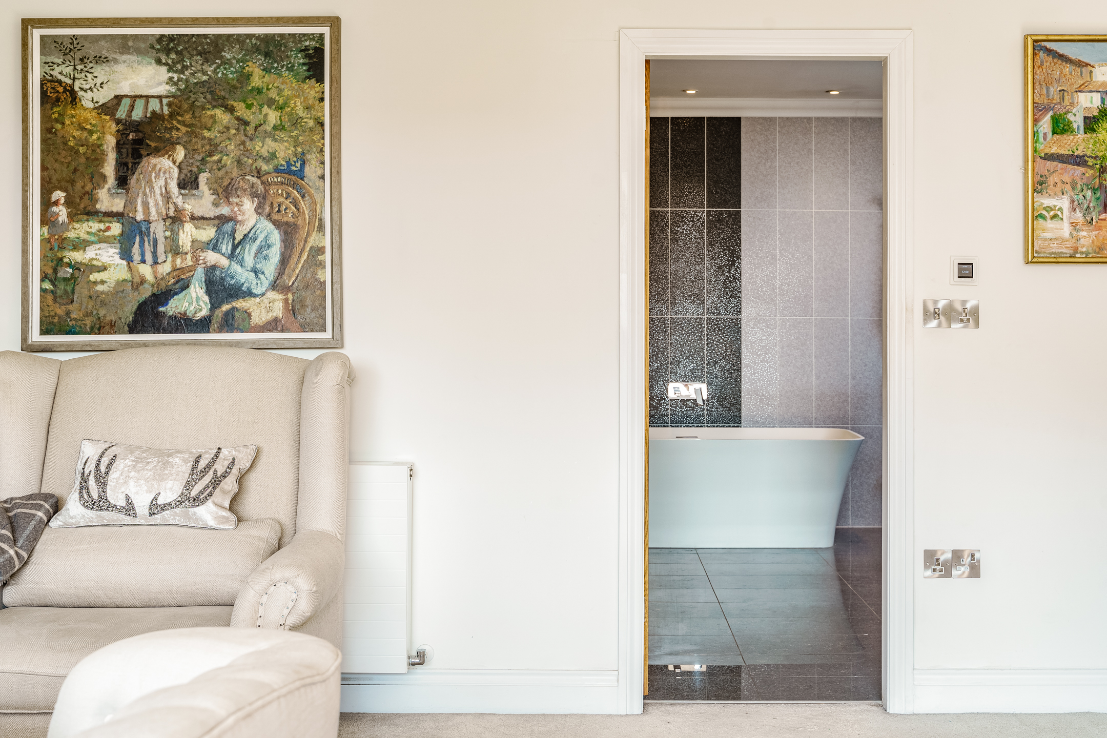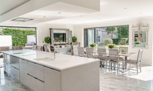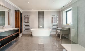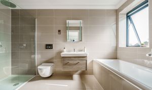 The lavish principal suite on the first floor boasts a south-facing balcony with sea views, an opulent bathroom with a free-standing tub and double walk-in shower and an impressive dressing area with an extensive array of customised wardrobes. There are four further bedrooms on this floor, all of which are exceptionally well-proportioned and have immaculate ensuites and either built-in or walk-in wardrobes.