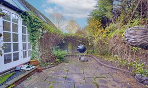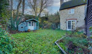 Outside, the cottage is approached via a private lane just off London Road. The delightful front garden is beautifully stocked with mature planting and lawn, with a paved path to the entrance porch. A timber-gated carport provides covered parking and leads to further parking and storage sheds, with previous planning permission to convert the carport into a garage with office above.