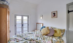 The private rear garden is fully enclosed and predominantly lawned, with established shrubs, trees, a summer house and gated access to a charming part-walled courtyard. A further courtyard terrace leads to an outbuilding currently used as a utility room.