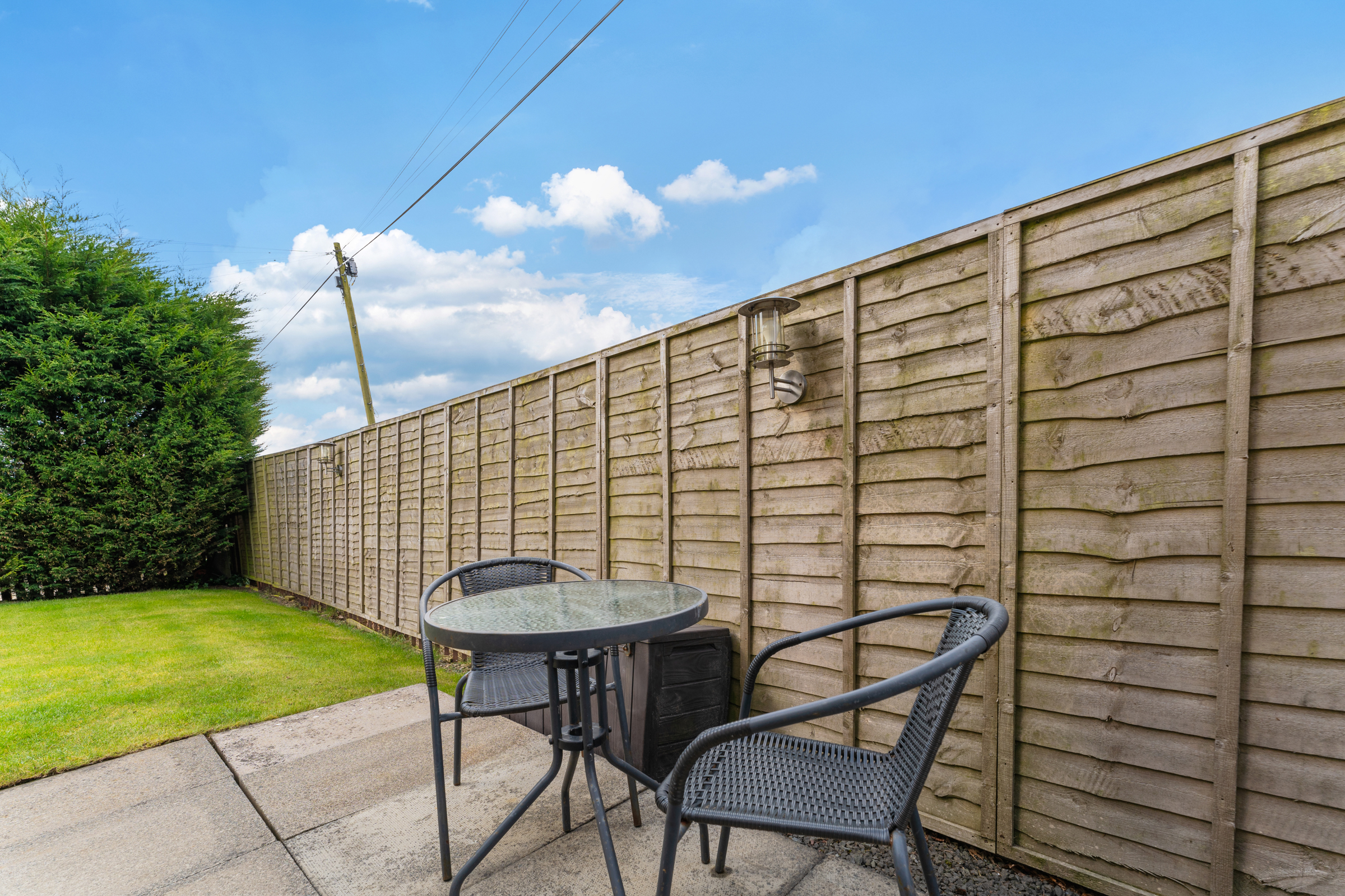 Outdoors, is a turfed rear garden, and a slabbed patio area – perfect for keen gardeners, and for relaxing when the weather is right!
