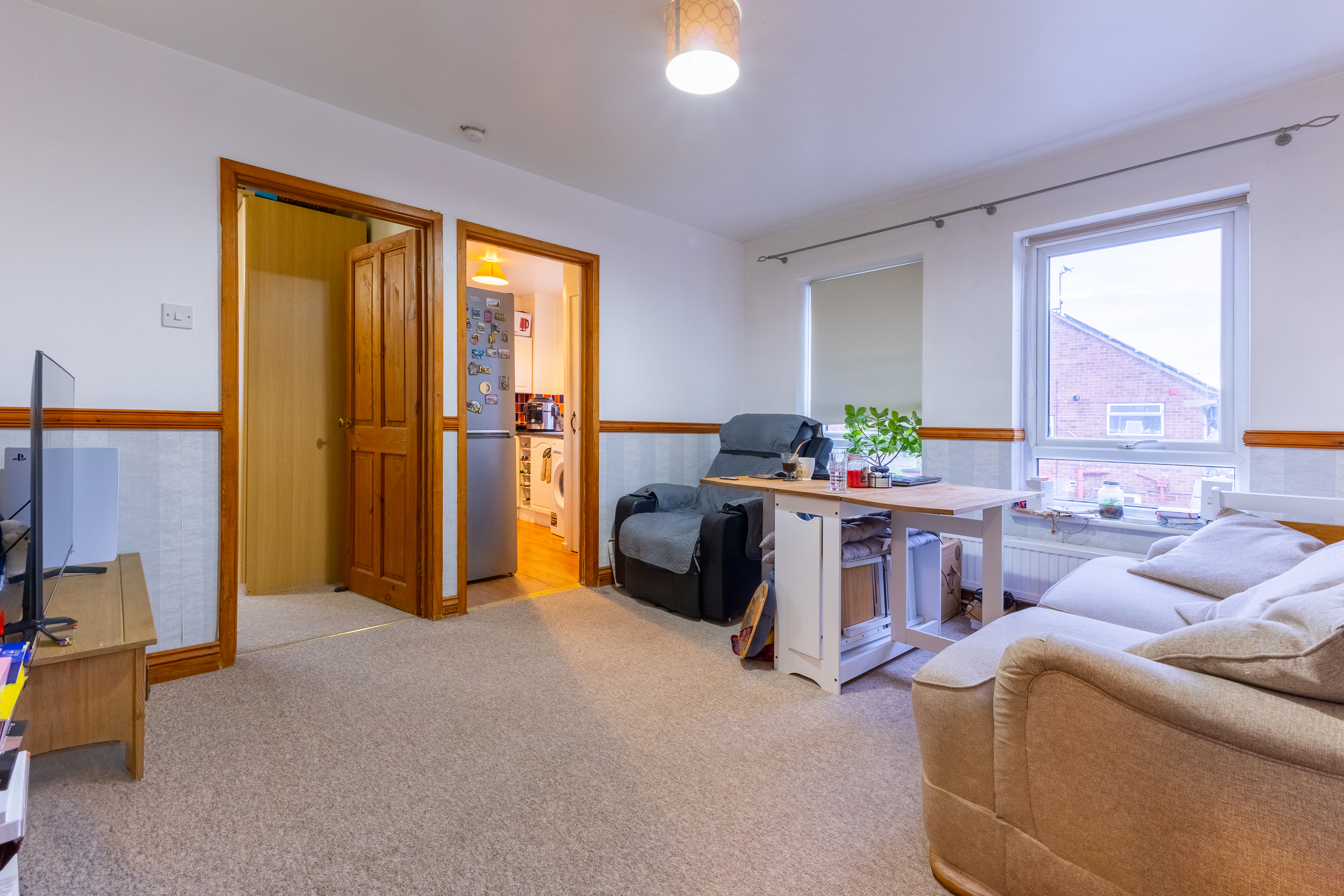 Upon entry, the property comprises an entrance hallway, large living room, kitchen with a range of modern fitted based and wall units and a large storage cupboard, one double bedroom with fitted double wardrobe and bathroom with white suite and shower over.