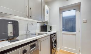 Upstairs, the property features three well-proportioned bedrooms, including a stunning loft room with ensuite bathroom. There are two contemporary bathrooms and a separate W.C, ensuring convenience for busy households.