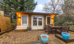 The property also benefits from a fully operating cabin at the rear of the large garden (ideal for use as a home office, gym or studio), as well as off street parking to the front.