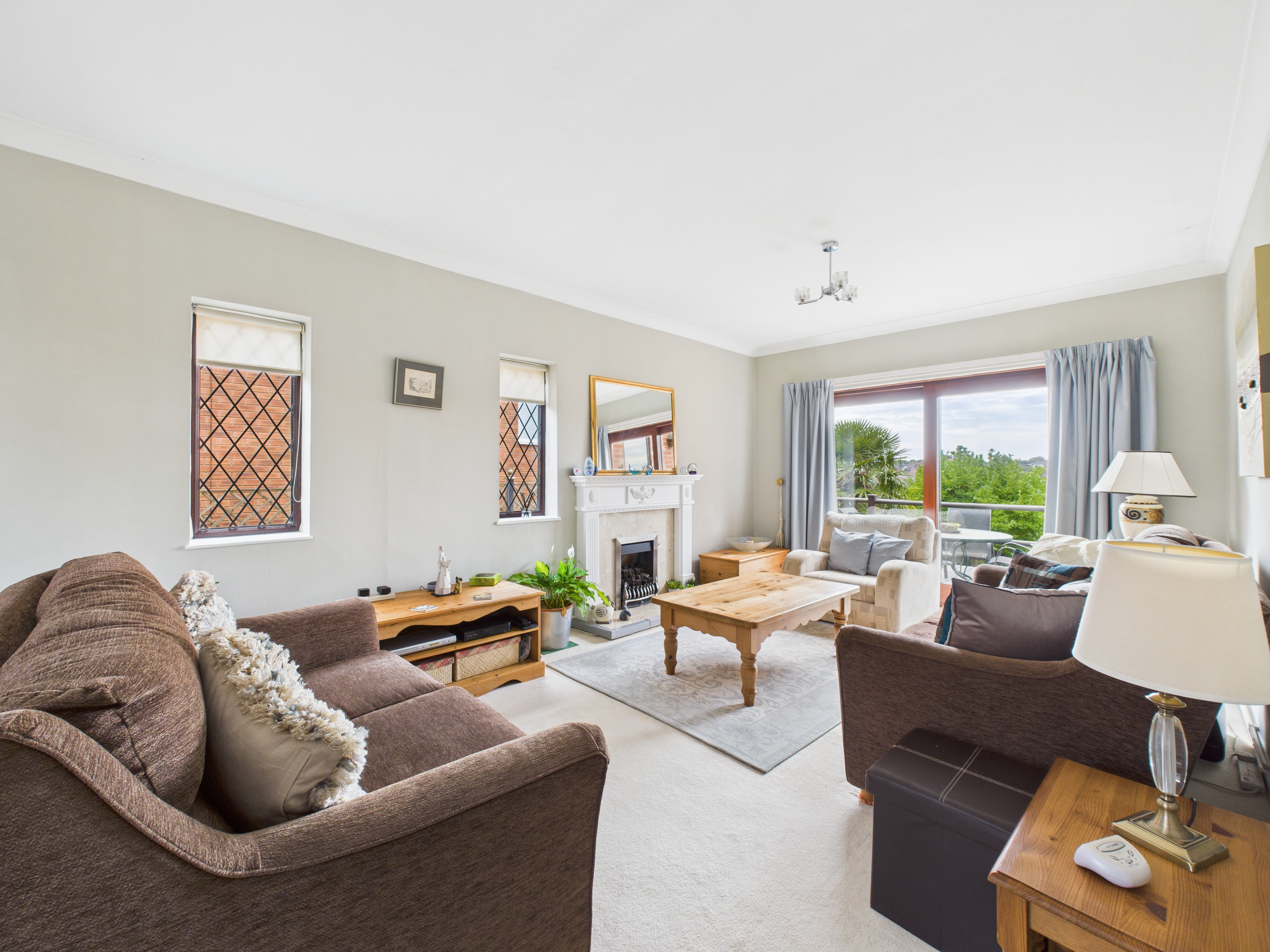 - Bright and spacious lounge/dining room with dual aspect windows, feature fireplace and patio doors