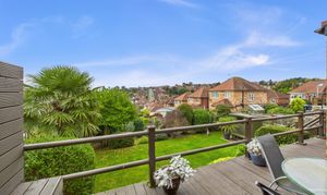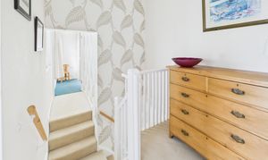 Stairs rise to a spacious first-floor landing which leads to three of the bedrooms and the family bathroom. The lovely main bedroom is bright and airy and benefits from a good-sized ensuite shower room equipped with a mains shower and wood effect flooring. The second bedroom is another generous double, complete with a storage cupboard and those amazing views. The third bedroom is also double in size. The family bathroom is well-appointed with a shower over the bath and a vanity basin offering useful storage, complemented by a separate WC for added convenience.