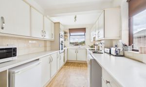- Well-equipped kitchen with dual aspect windows, integrated double oven, cooker hood and electric hob