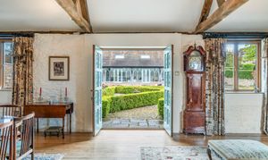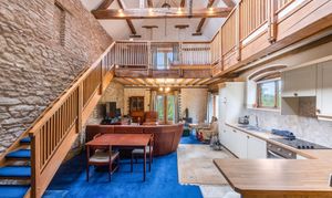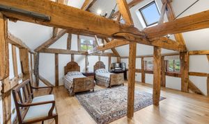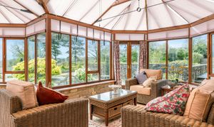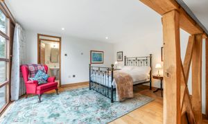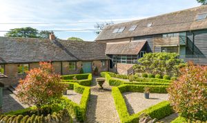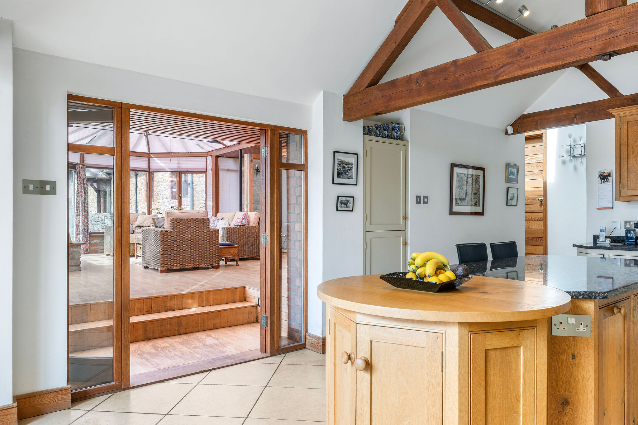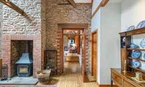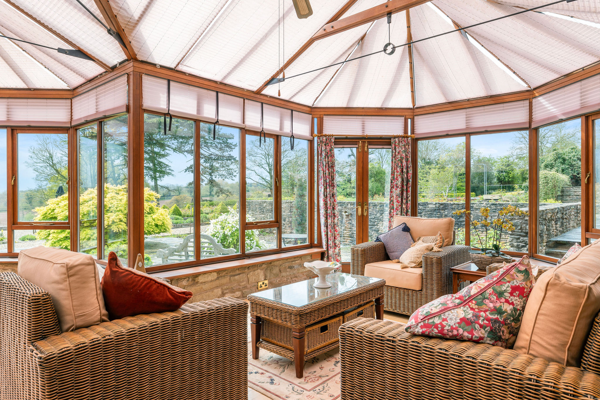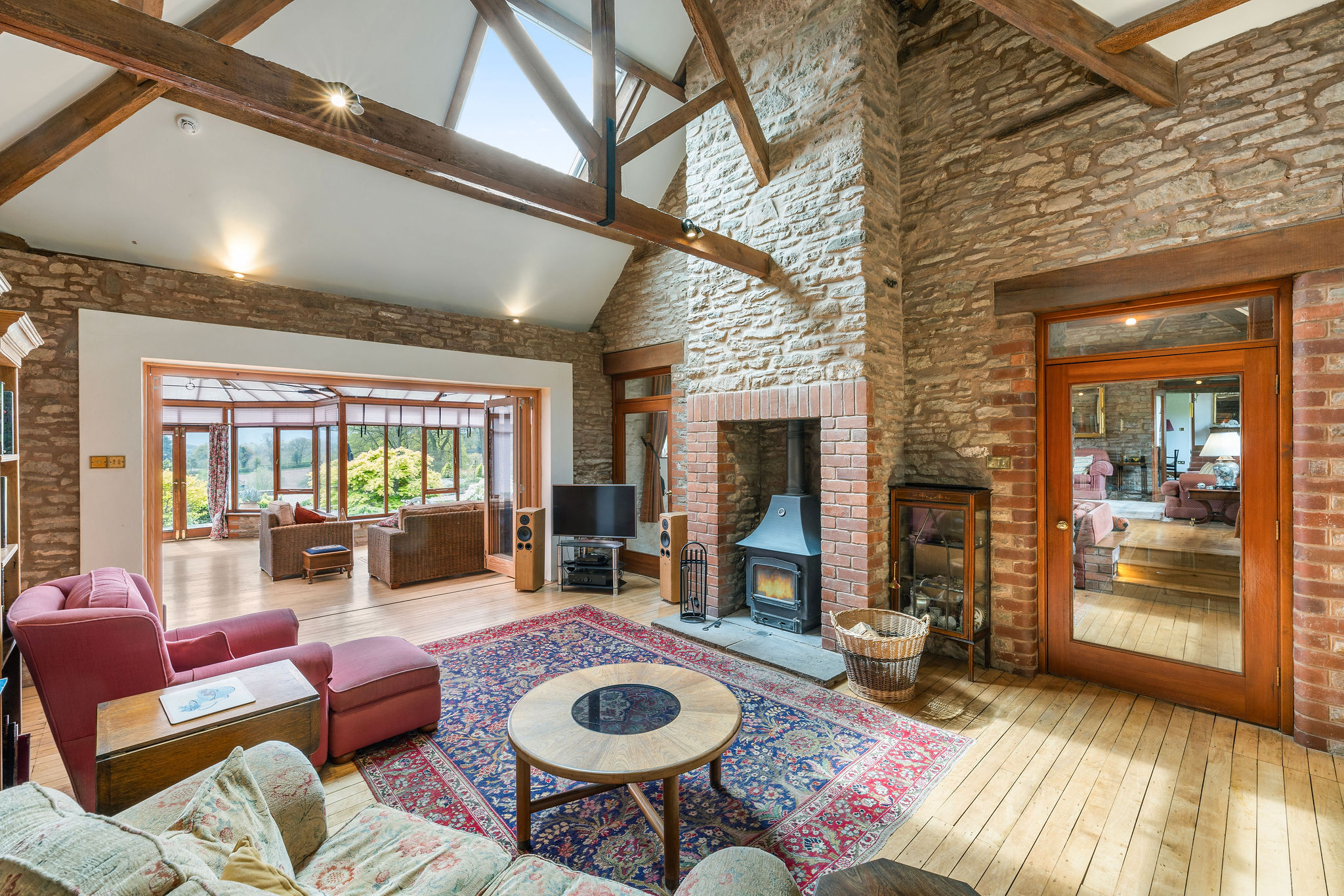 This former cluster of estate farm buildings, thoughtfully converted in the 1980s, has evolved into a generous, characterful home where exposed stonework, inglenook fireplaces, vaulted ceilings and reclaimed materials create warmth and timeless atmosphere. Everyday living flows naturally here, with the Aga kitchen, conservatory and garden terraces connecting indoor comfort with the beauty of the surrounding countryside. There is a ground floor principal suite, four further en suite doubles and a self‑contained annexe, making the house incredibly flexible for multi‑generational living, guests, or space‑hungry families.