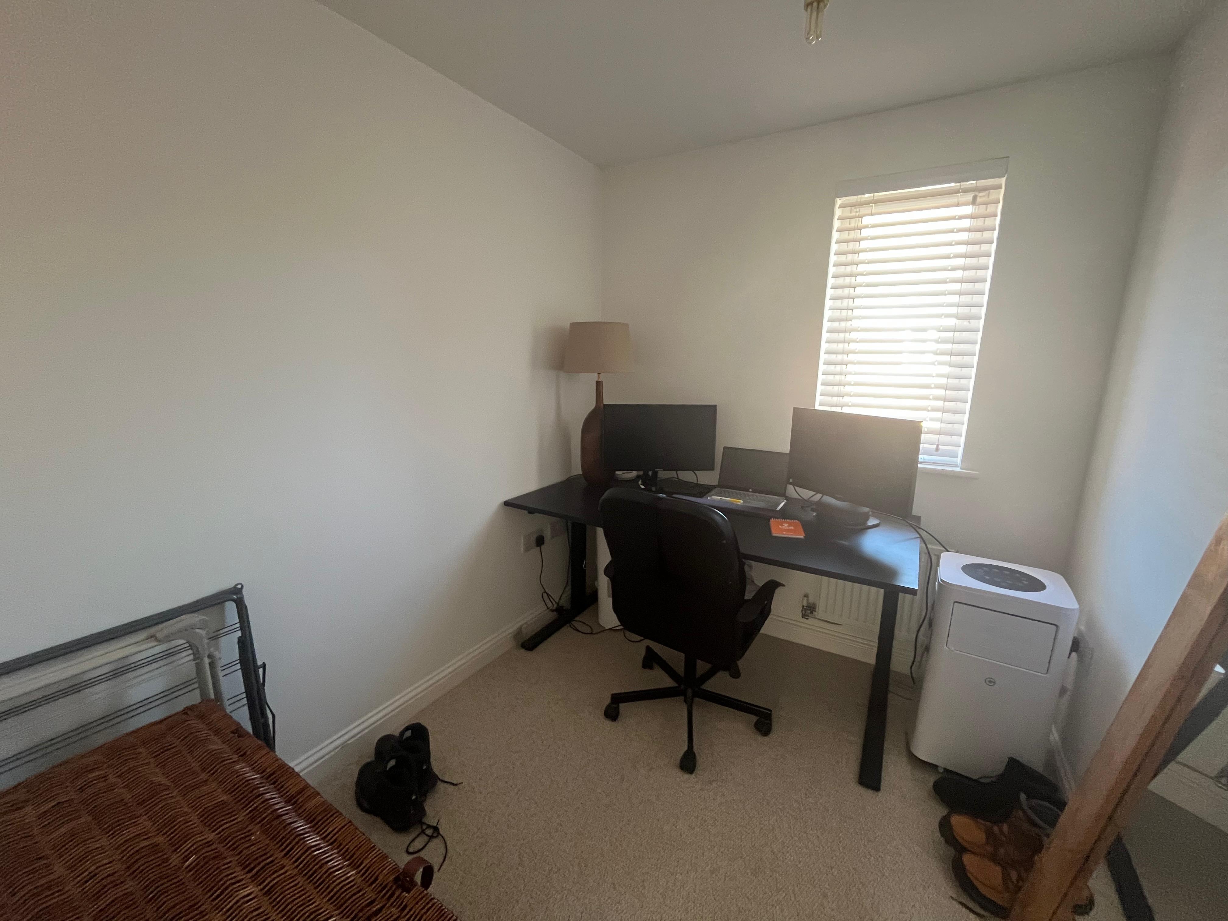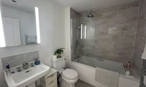 Three piece bathroom suite comprising; shower, WC and basin. Velux window to the rear, shaving point, extractor & radiator.