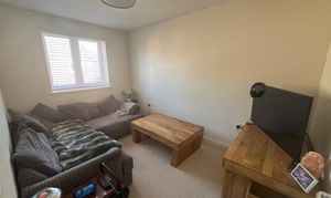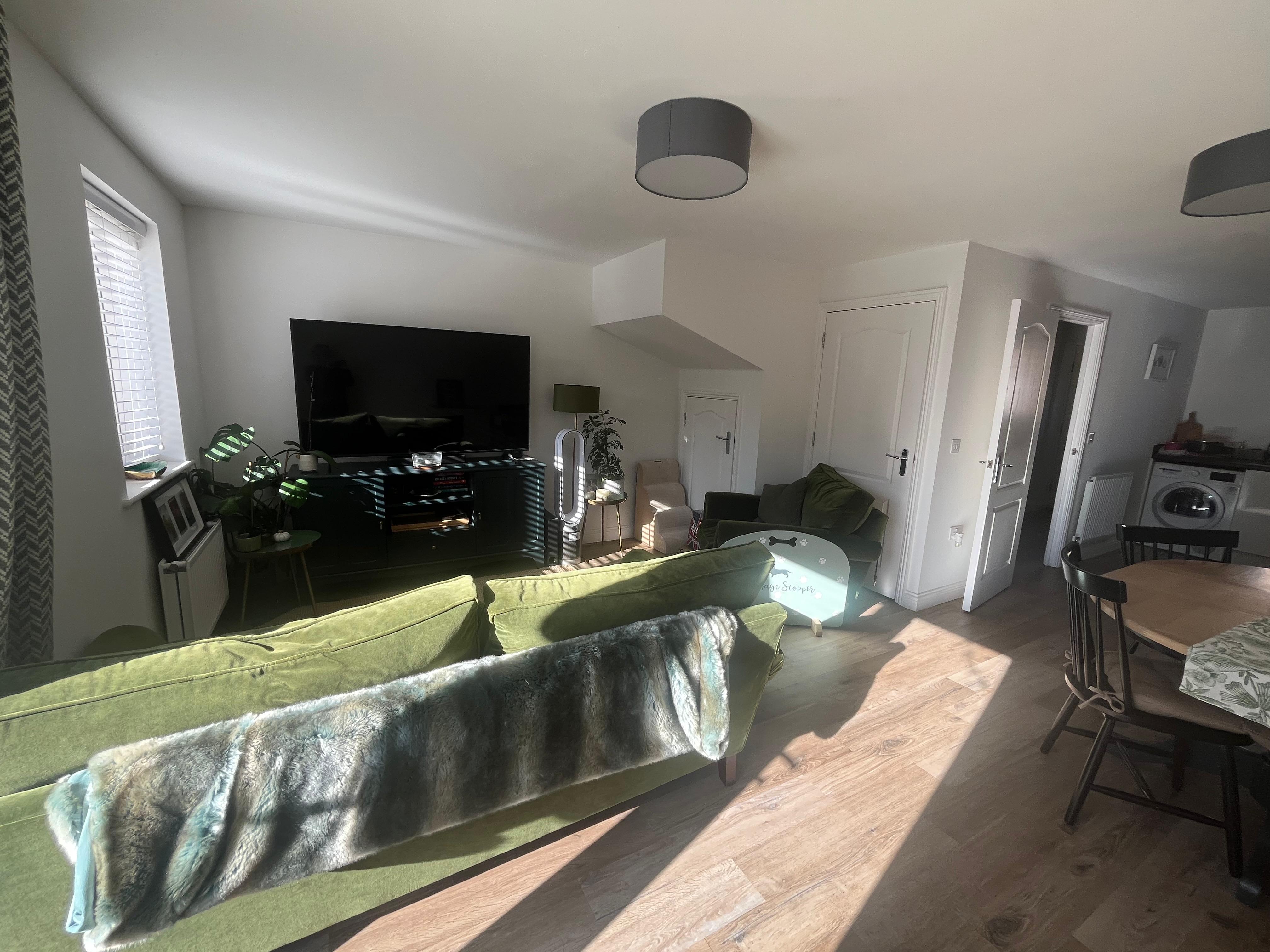 UPVC double glazed window and Patio doors to the rear. Two radiators. Television point. Wood effect flooring. Panelled door to under stairs storage cupboard.