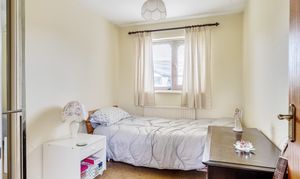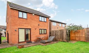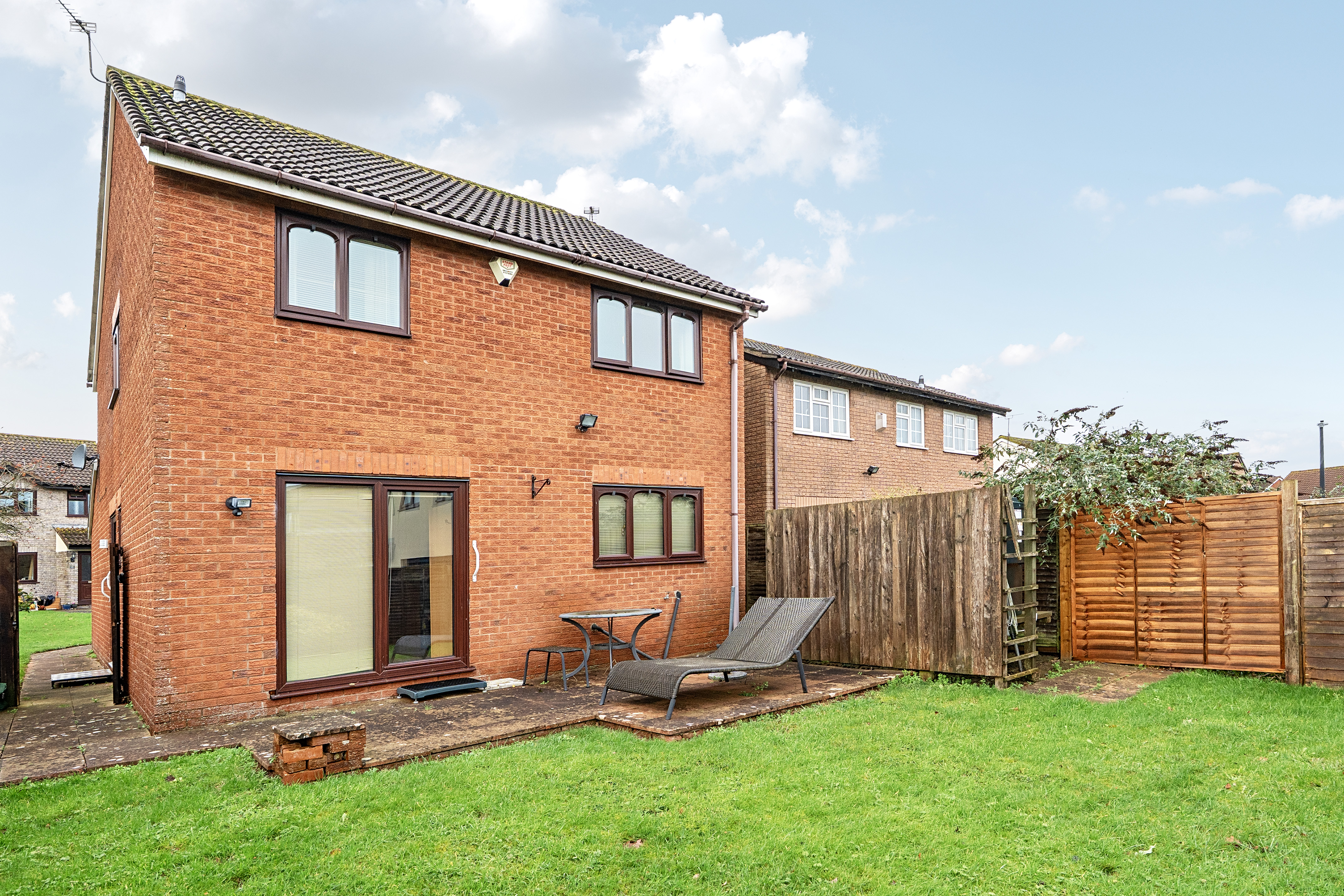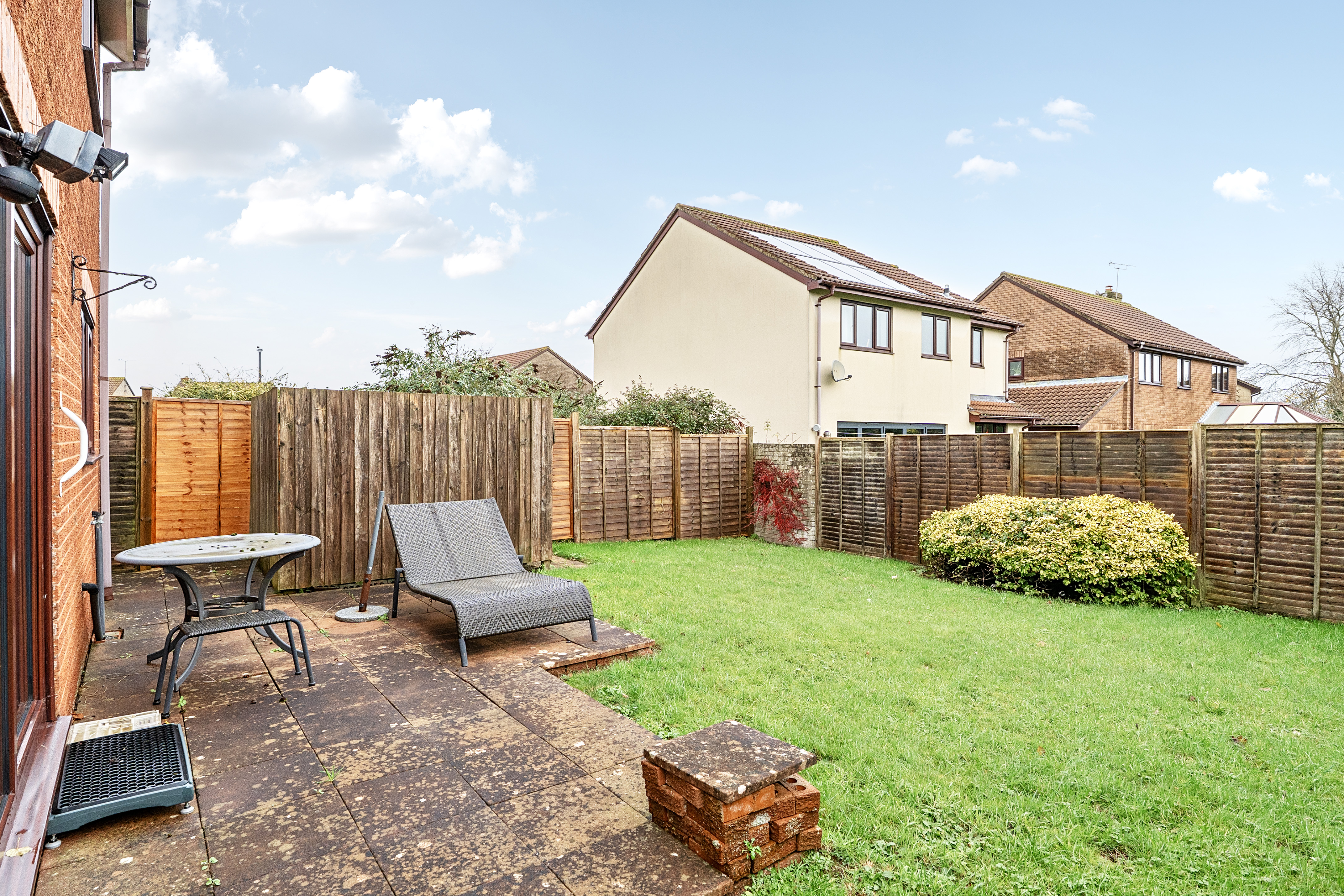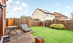 The rear garden features a sizeable patio off the dining room, leading to a lawned area that widens to create extra usable space. To the side, there’s another patio ideal for discreet bin and recycling storage, plus a gate to the front. At the front, the driveway provides parking for two vehicles and leads to the garage, completing this well-located and appealing home.