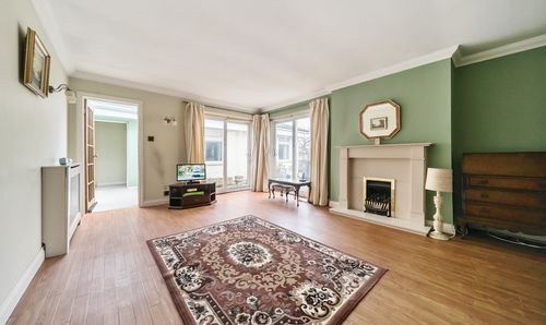 To the left, a glazed door with side panel leads into the sitting room, where a large window allows plenty of natural light to fill the room.