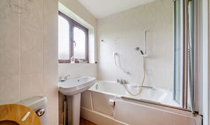 The landing provides access to a generous airing cupboard, and the family bathroom, though ready for updating, is fully functional.