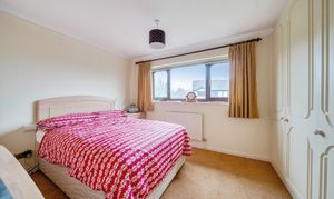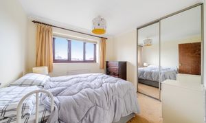 Upstairs, the property offers three double bedrooms and a well-proportioned single. Two doubles have mirrored fitted wardrobes, and the principal bedroom includes extensive built-in storage.