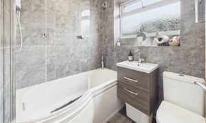 The property further benefits from a MODERN, white suite FAMILY BATHROOM, ensuring both style and functionality . The low maintenance REAR GARDEN provides a retreat for outdoor enjoyment, complemented by a DEEP DRIVEWAY leading to the DETACHED GARAGE which can also be used as a workshop.