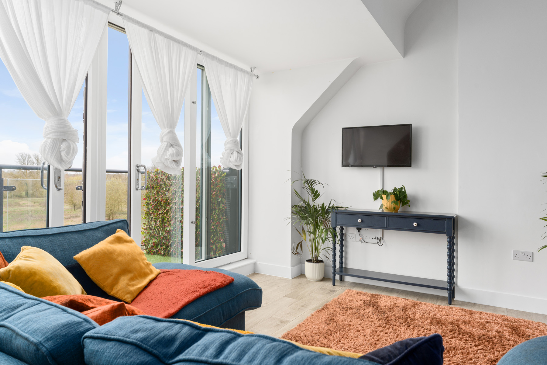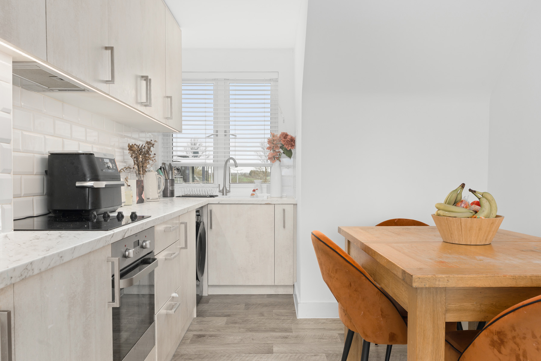 Move-in ready yet still full of opportunity to add your own touch, this is a lovely home for first-time buyers, downsizers and young families. Inside the vaulted open-plan living area with outdoor balcony terrace is a great space to relax, cook and entertain. The kitchen includes sleek cabinetry with integrated oven and hob plus plenty of space for a dining table and chairs. Sunny and bright, the lounge is awash with plenty of natural light from the sliding doors onto the balcony beyond. We just love this spot! Overlooking sweeping countryside - it’s the perfect place to read a book with your favourite tipple in hand! Through to the bedrooms, you’ve a choice of three doubles - with the primary complete with fitted wardrobes and an ensuite shower room. Completing the apartment is serene family bathroom, plus plenty of handy storage nooks throughout the home.