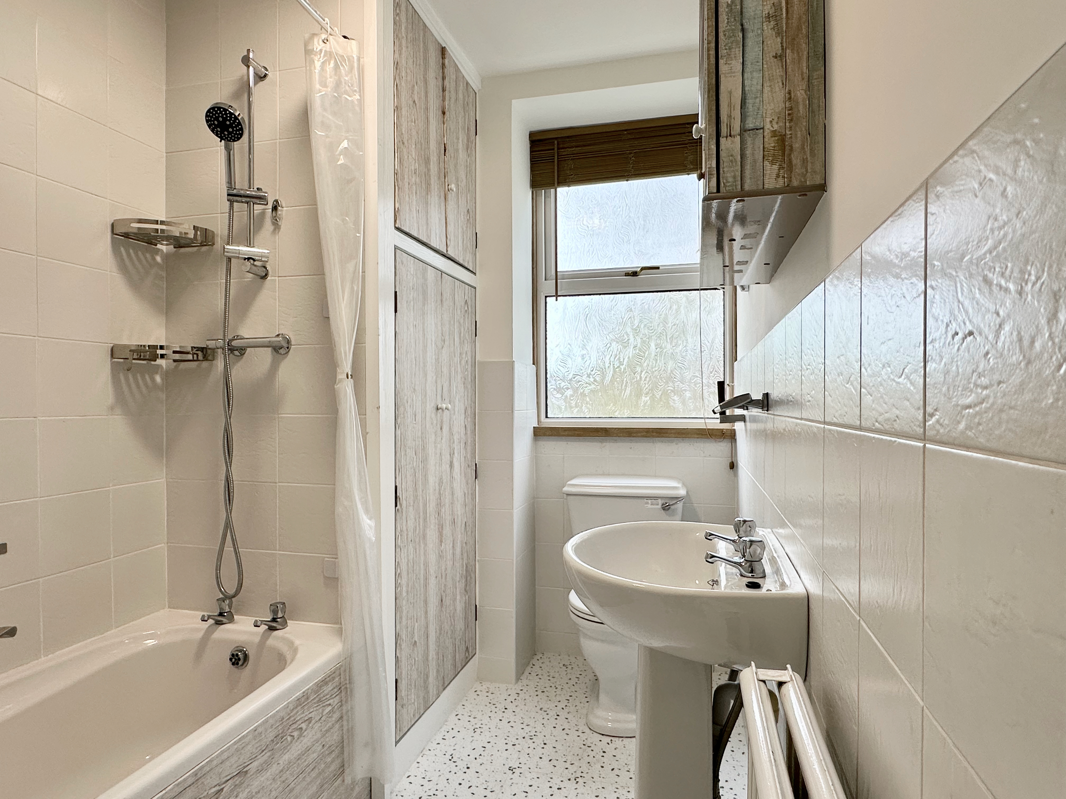 Outside, there’s a shared garden and driveway parking for one car and access to a garage.