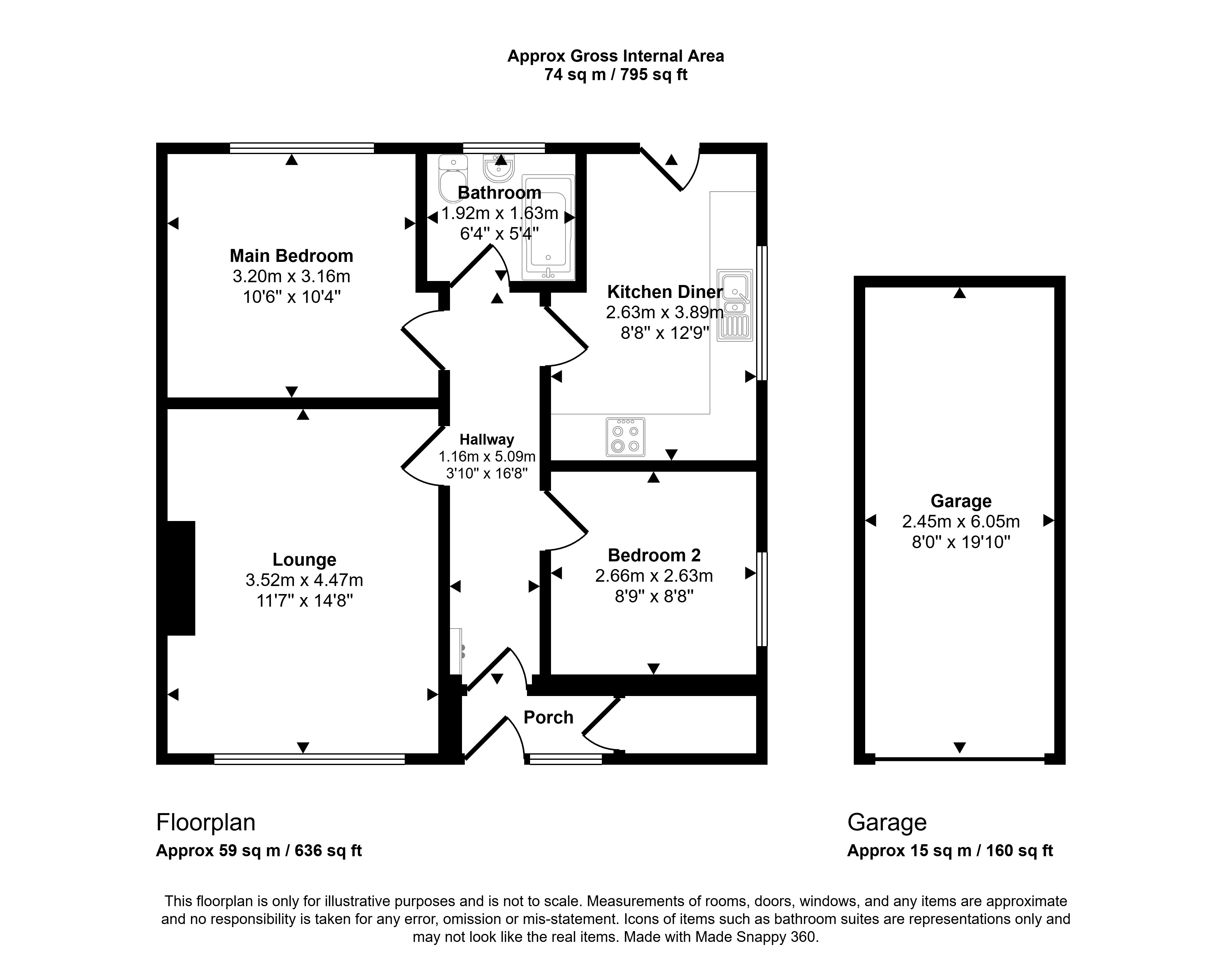 Externally, the bungalow benefits from a long driveway providing ample off-road parking, a detached garage, and a lawned garden to the front. To the rear is a private lawned garden with patio area, perfect for relaxing or outdoor dining.