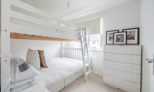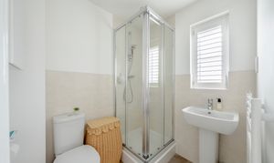 Upstairs, the first floor offers two double bedrooms, including a principal bedroom with a stylish en-suite shower room, together with a third single bedroom with built-in wardrobes. A modern family bathroom and two useful landing storage cupboards complete the accommodation.