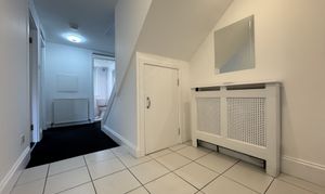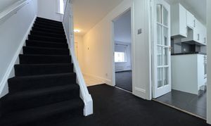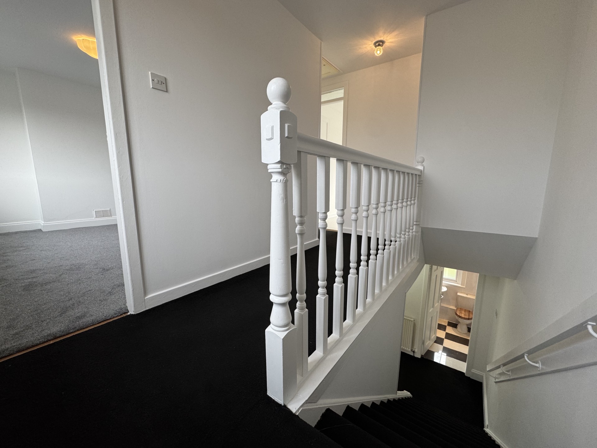 Accessed via steps to a welcoming porch with PVC door, the reception hallway provides entry to all lower apartments and features a staircase to the upper landing. The fabulous front-facing lounge is generously proportioned, enhanced by fresh white décor, a new carpet, and a large double-glazed window that floods the room with natural light.