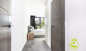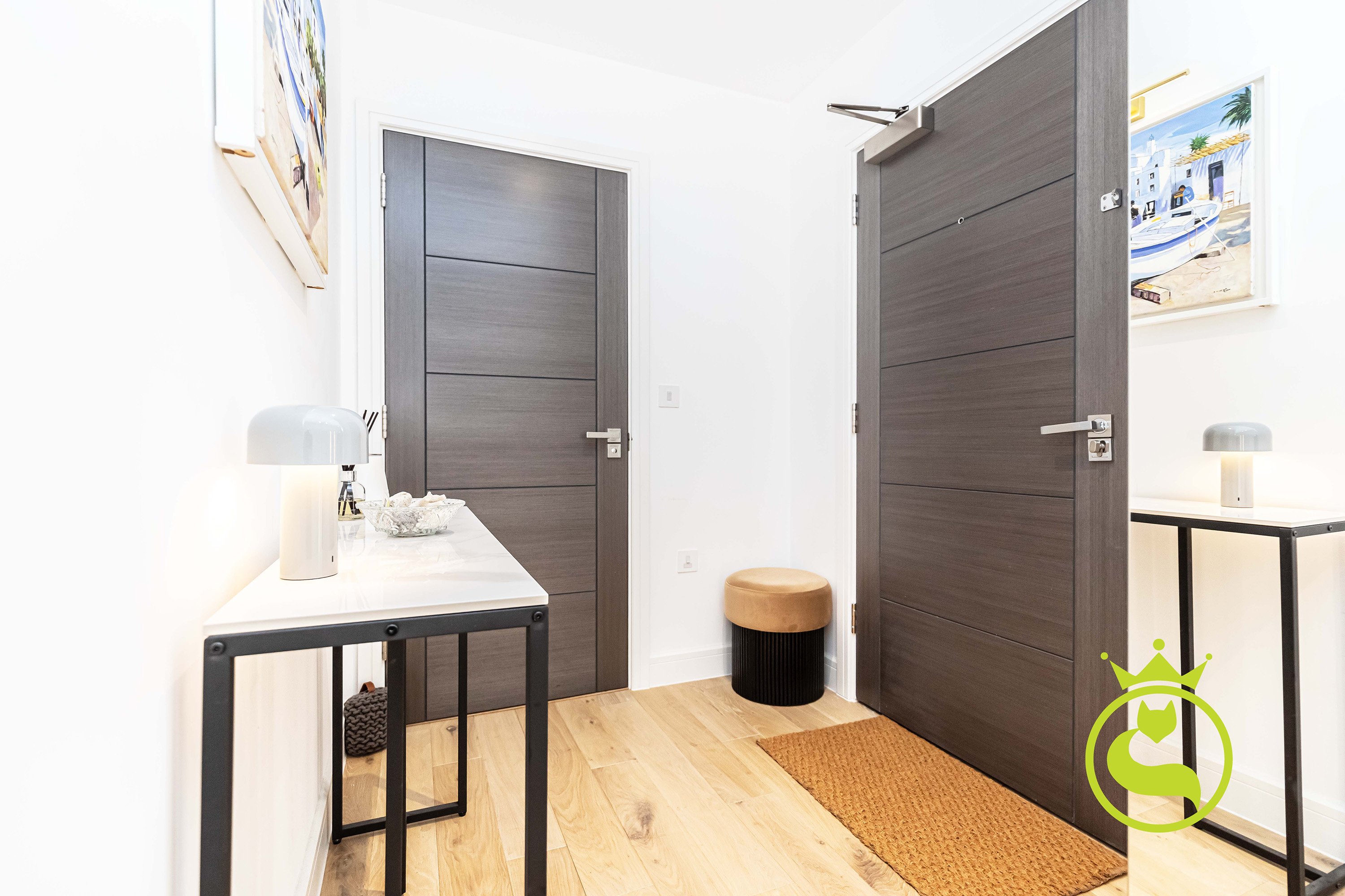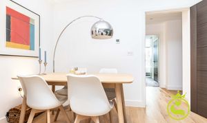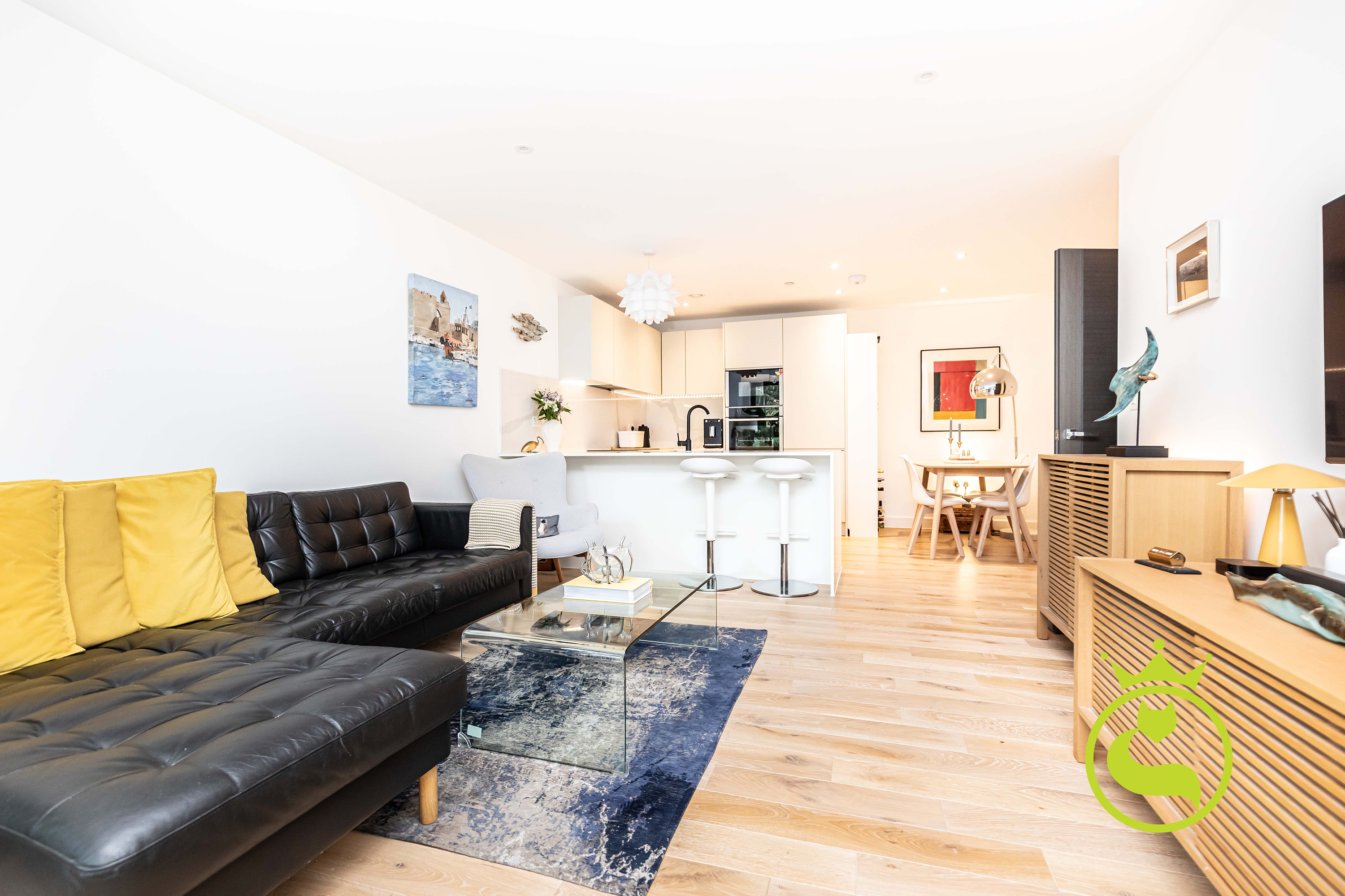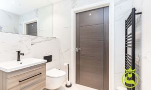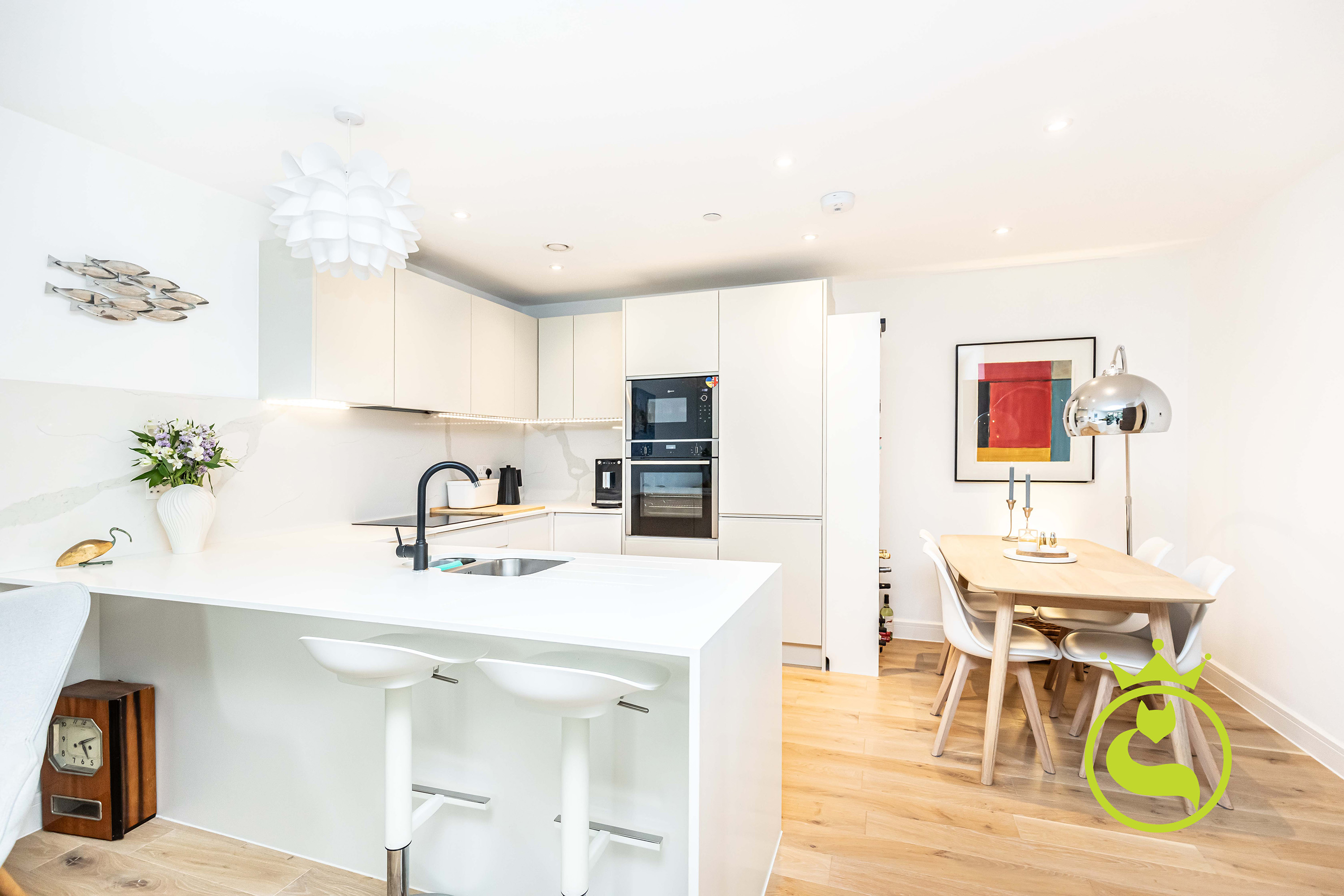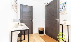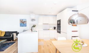 “A beautifully designed, modern flat set in a sought-after area surrounded by lush greenery. Finished to a high standard throughout, the property features elegant wooden flooring and a refined, contemporary feel. The peaceful setting and quality finishes create a warm, inviting home that is both stylish and tranquil.”