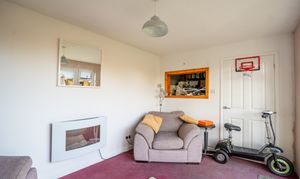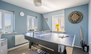 The former single garage has been partly converted into a games room/home office with French doors to the garden, while retaining a useful front storage area with the original up-and-over door.