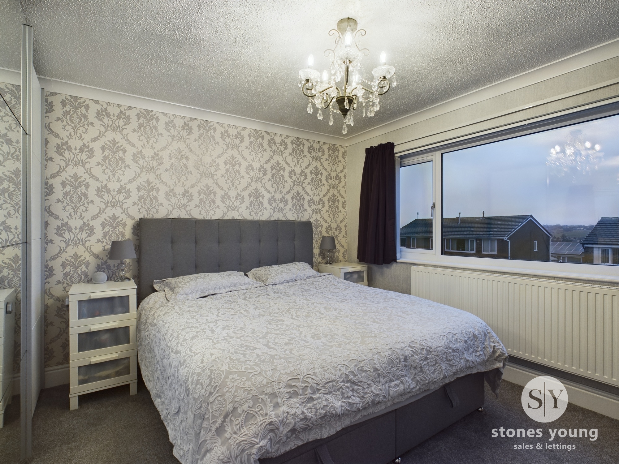 Carpet flooring, panel radiator, uPVC double glazed window.