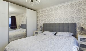 Double bedroom, carpet flooring, fitted cupboard, panel radiators, uPVC double glazed window.