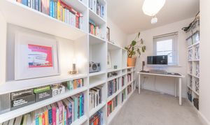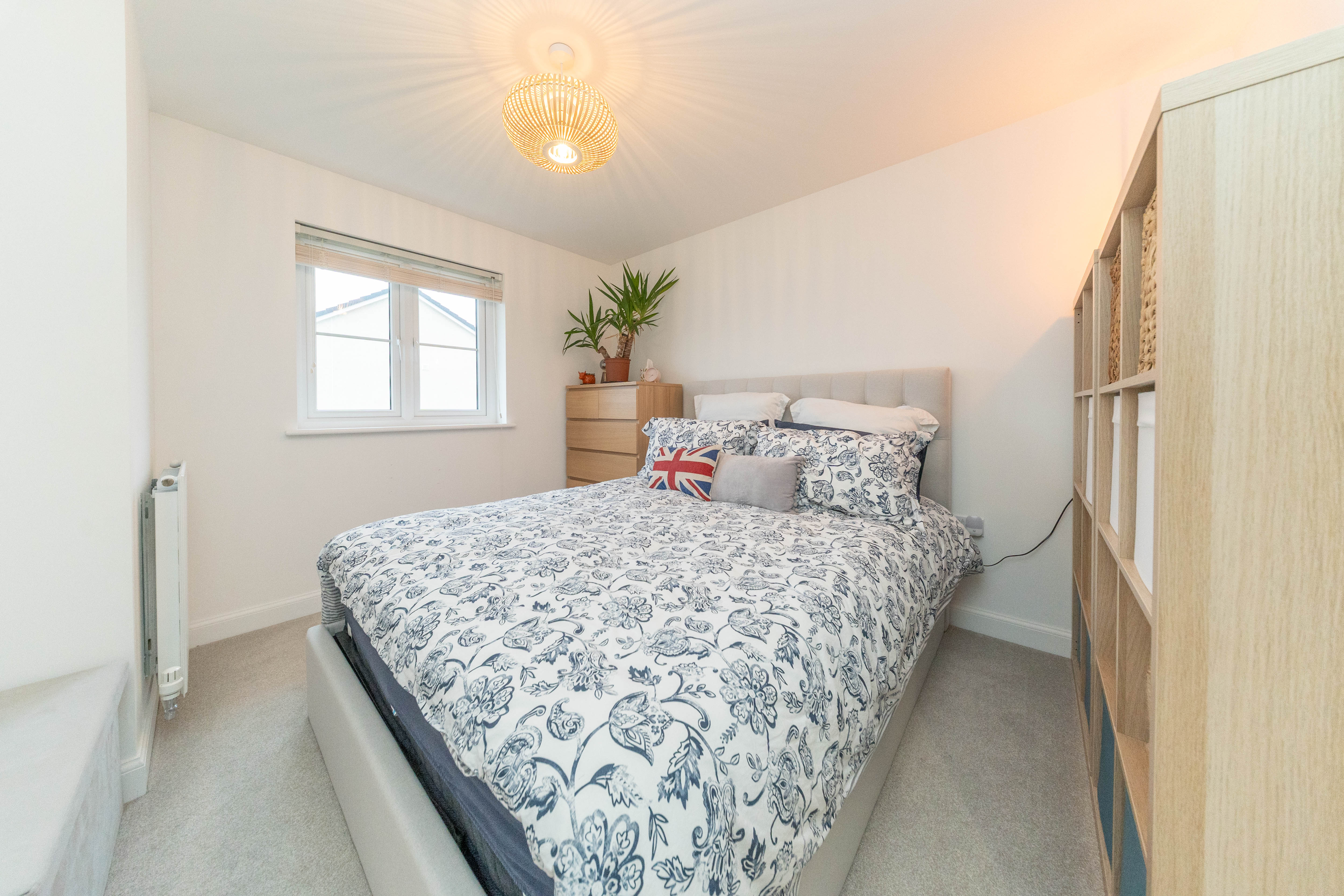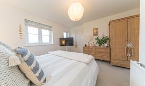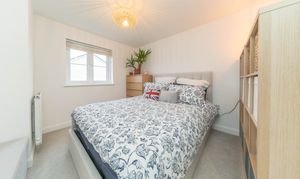 This great second double bedroom is tastefully finished with white painted walls and carpeted flooring, creating a warm and inviting ambiance. A rear facing window allows natural light to flood the room, complemented by a ceiling light for a bright and airy feel. The room is further equipped with power points and a radiator.