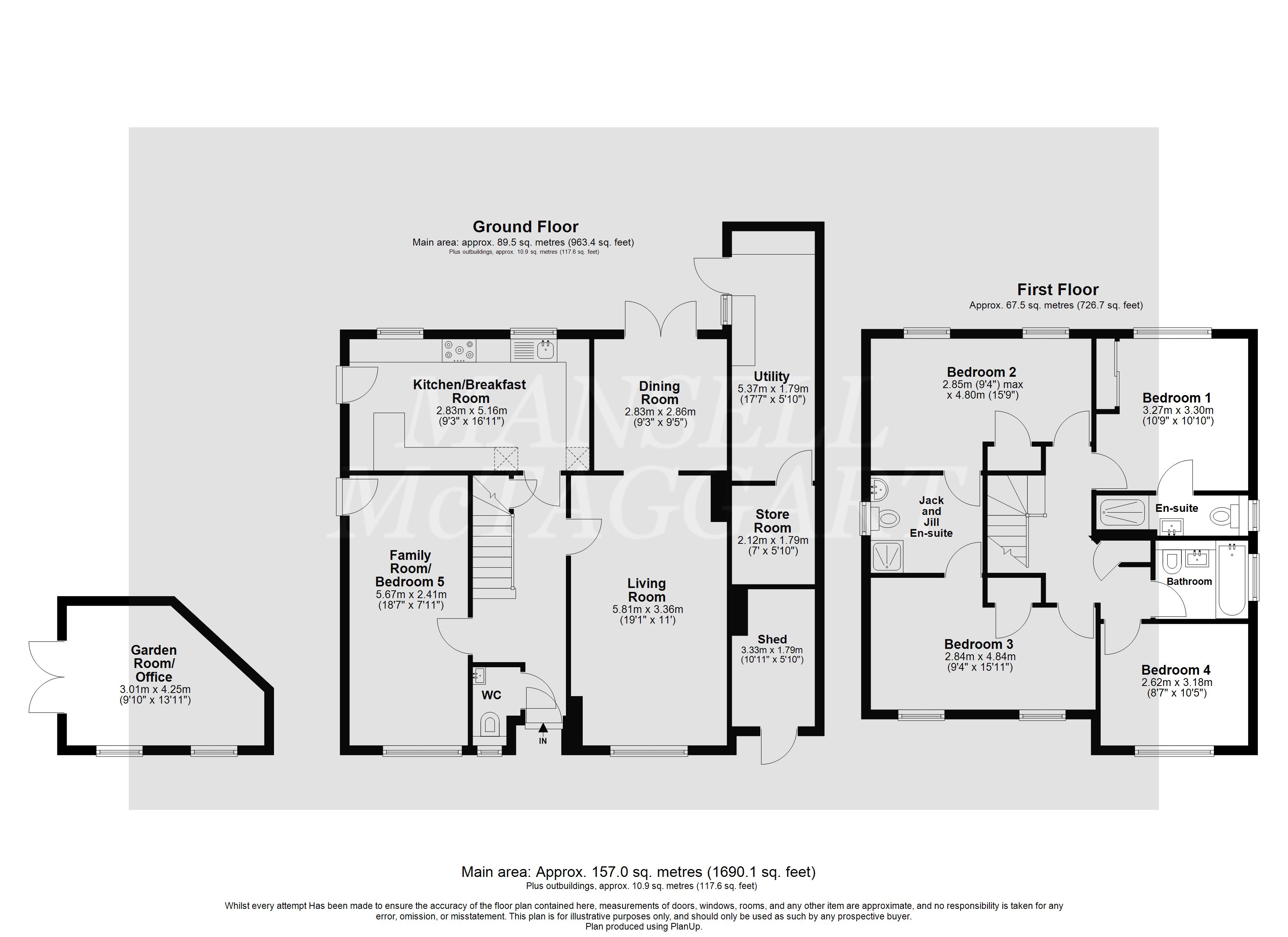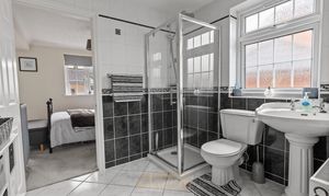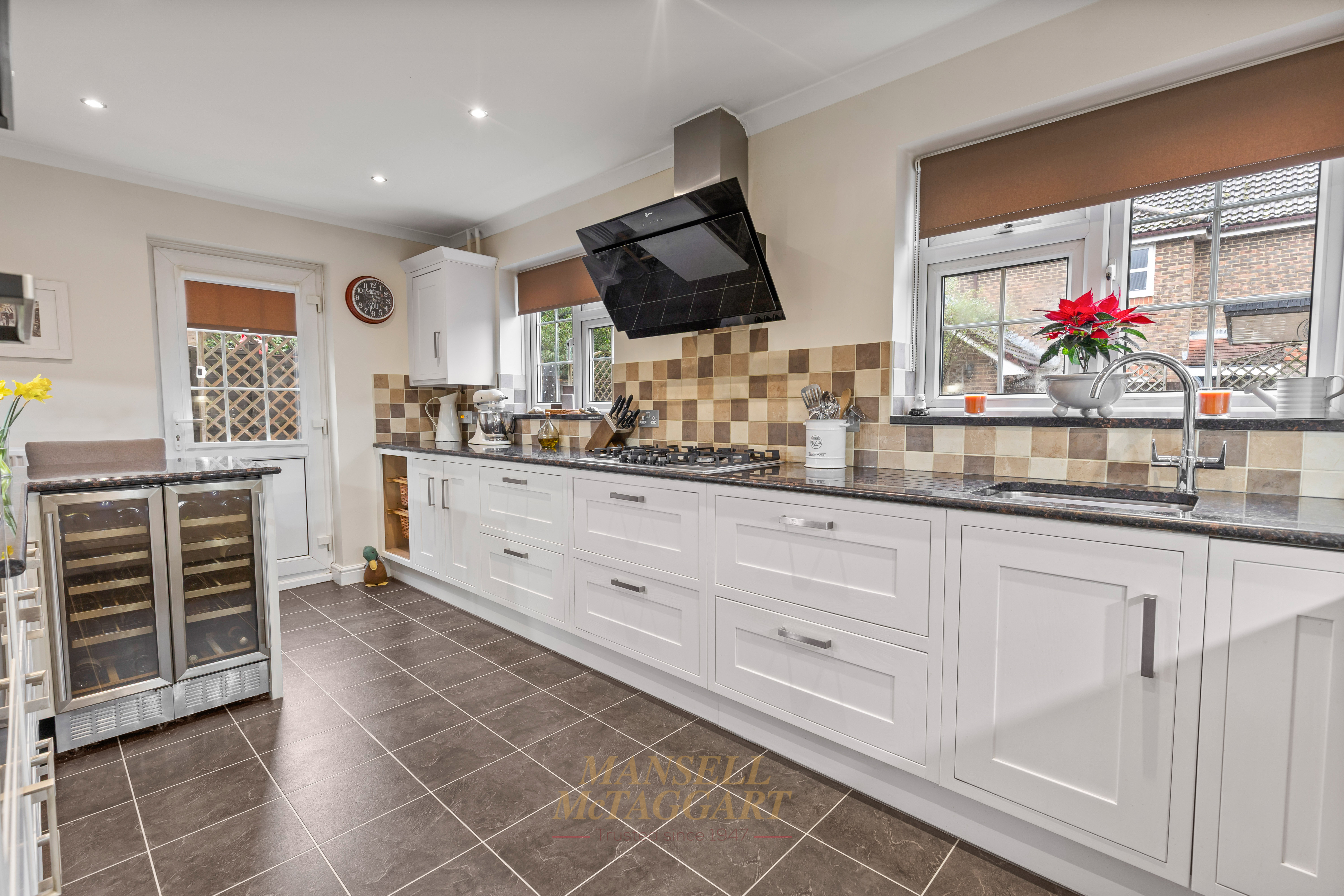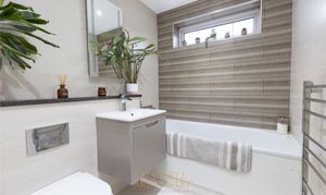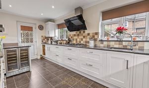 On approach to the home, you will notice the imposing frontage with the large extension over the garage and side of the home, converted garage and large frontage. Currently benefiting for a driveway for 2+ vehicles, with potential to extend further if required. Entering the home, a spacious entrance hall has ample space for shoes and coats with access to the reception room/bedroom 5, w/c, kitchen/breakfast room, open plan living/dining room and stairs to first floor. The w/c has been recently refitted, being mainly tiled with a new w/c and wash hand basin. The garage has been converted, into a versatile family room/downstairs bedroom with space for family furniture or double bed depending on use. There is a window to front allowing in lots of natural light, and patio door to side. The living/dining room is a bright and airy room, with ample space for multiple large family sofas, 6+ person dining table and any freestanding furniture you may wish. There is also a large window to front and French doors to rear. The kitchen/breakfast room has been extended and upgraded, now comprising of stylish wall and base units, fitted appliances and a window and patio door to rear.