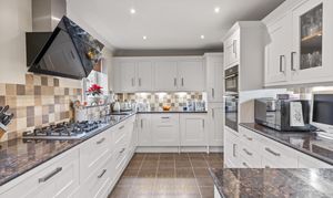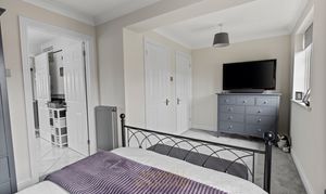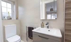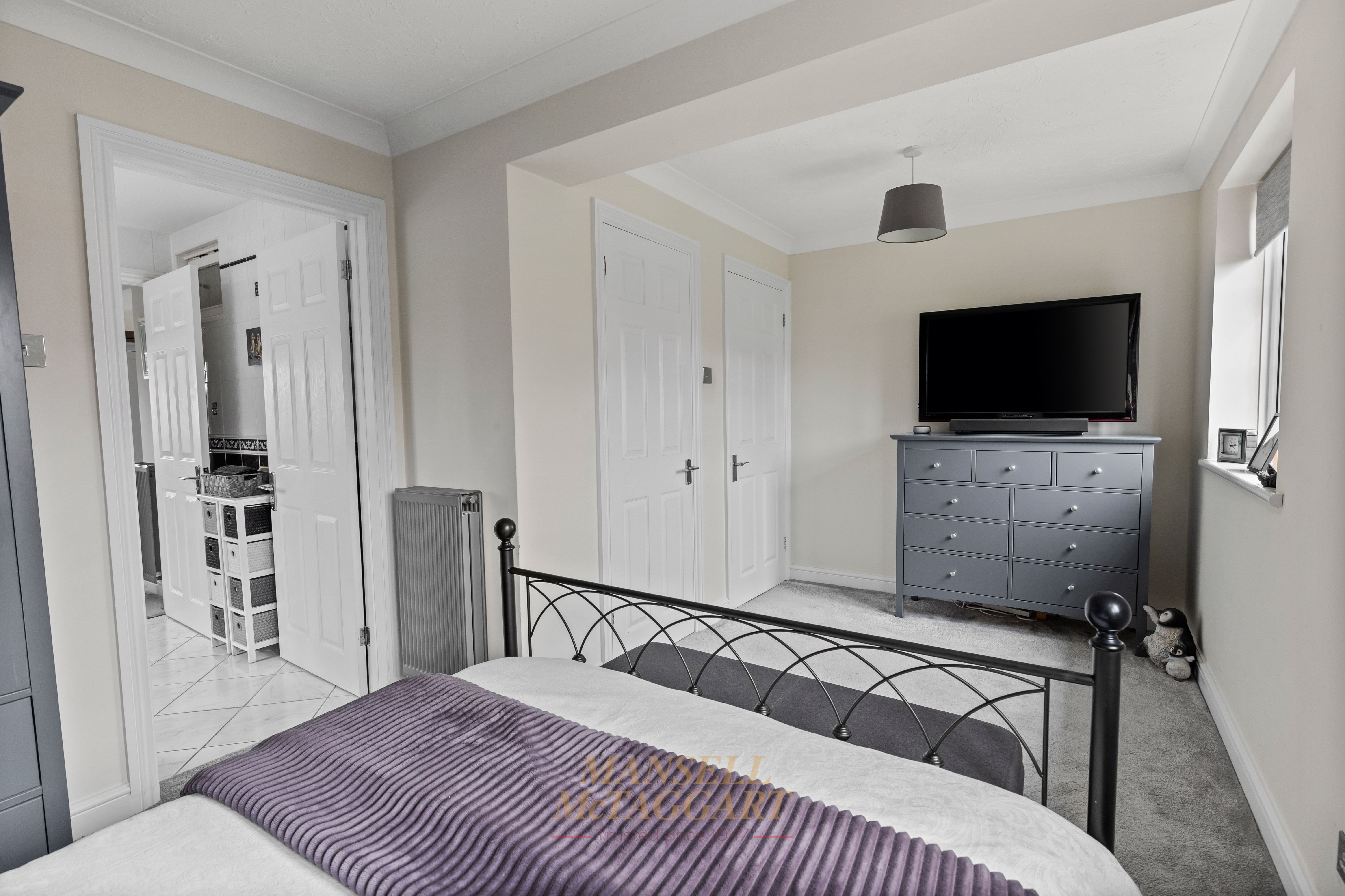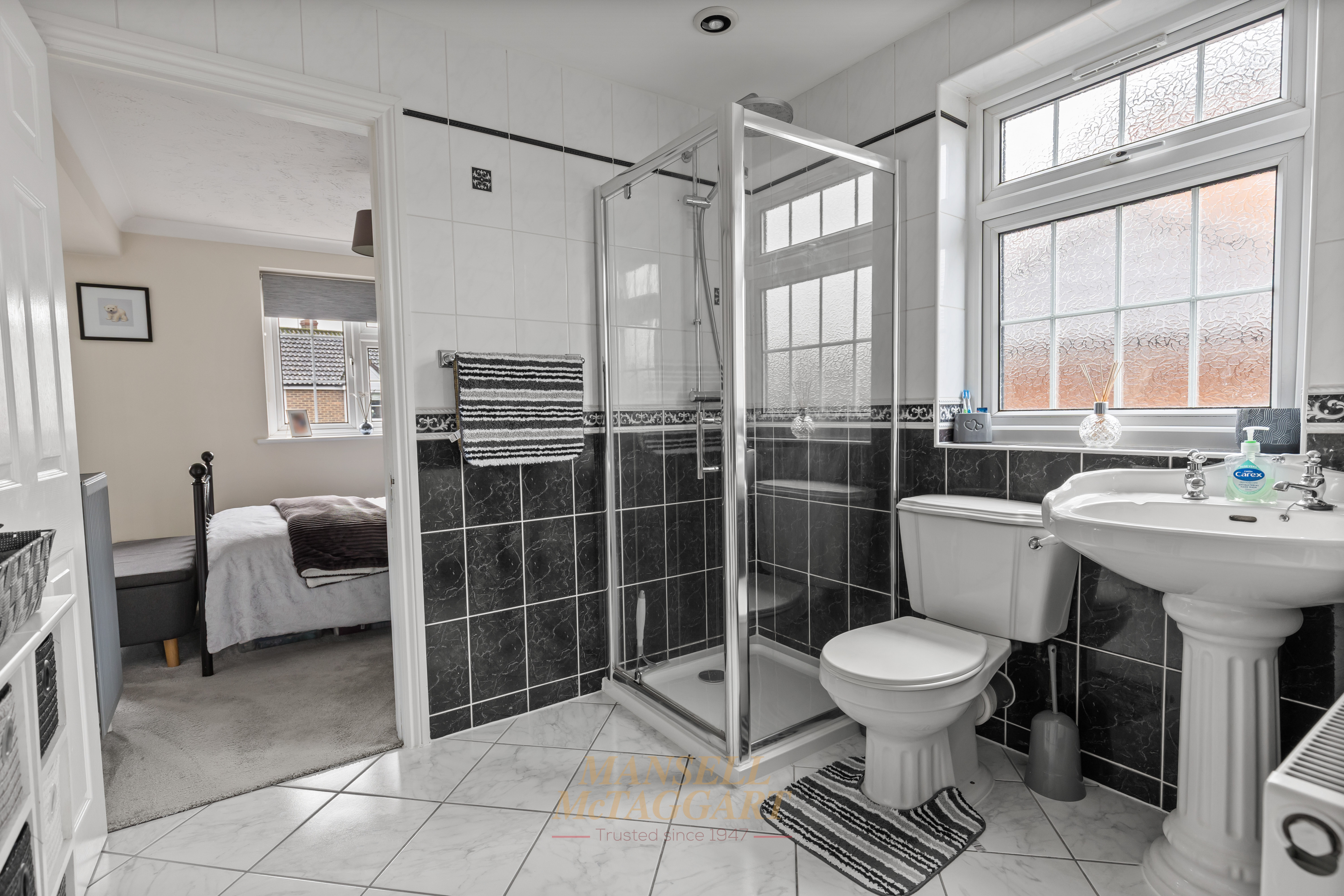 Upstairs has undergone vast extensions and remodelling. Now accommodating 4 double bedrooms. Bedroom 1 is a comfortable double room with fitted wardrobes and a refitted en-suite. Bedrooms 2 and 3 are equally generous double rooms having Jack & Jill doors to a shared bathroom, which houses all expected sanitaryware. Bedroom 4, is surprisingly also a double room, rarely seen in such homes. The family bathroom has been refitted to a high standard, being fully tiled and housing a modern shower, w/c and wash hand basin.