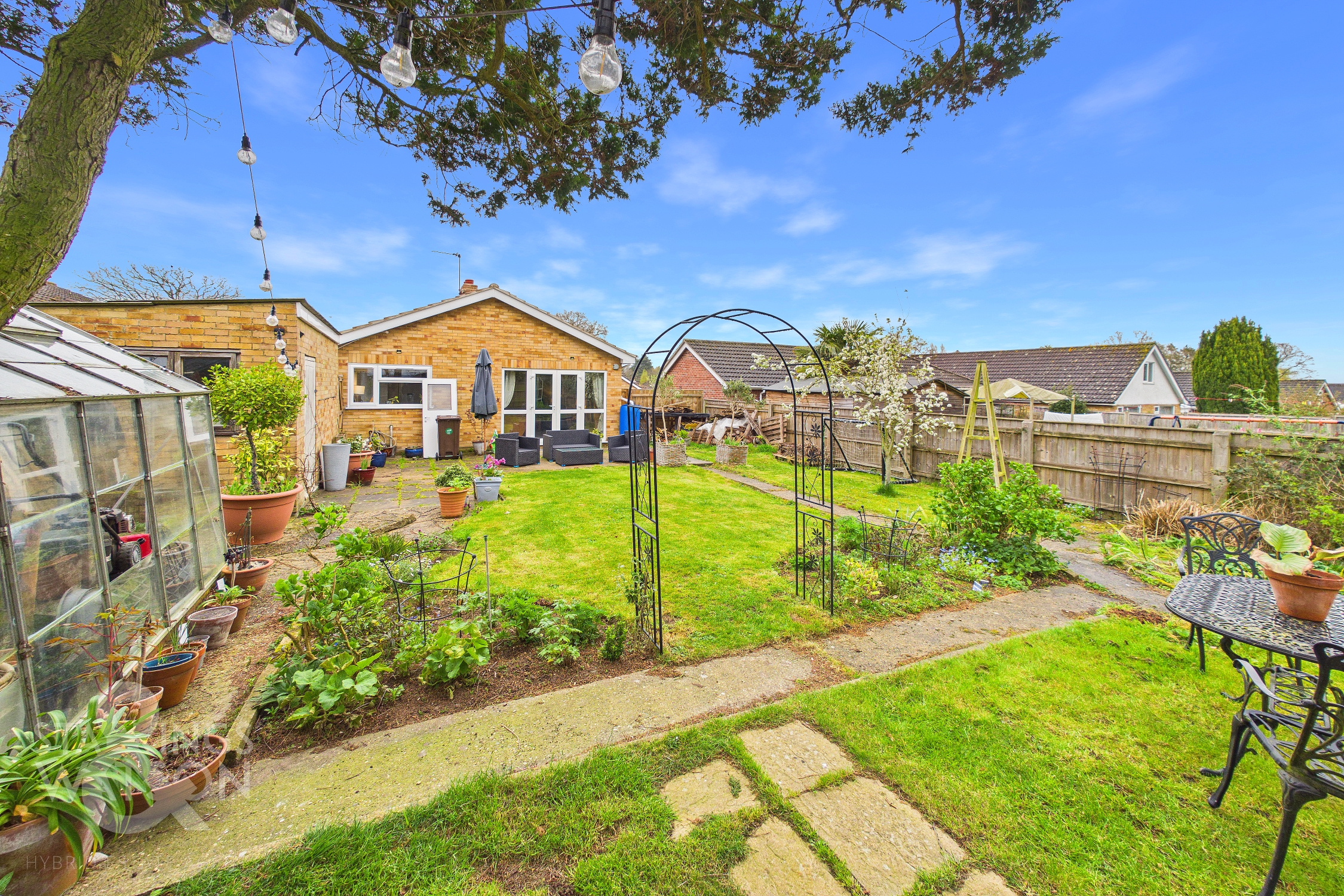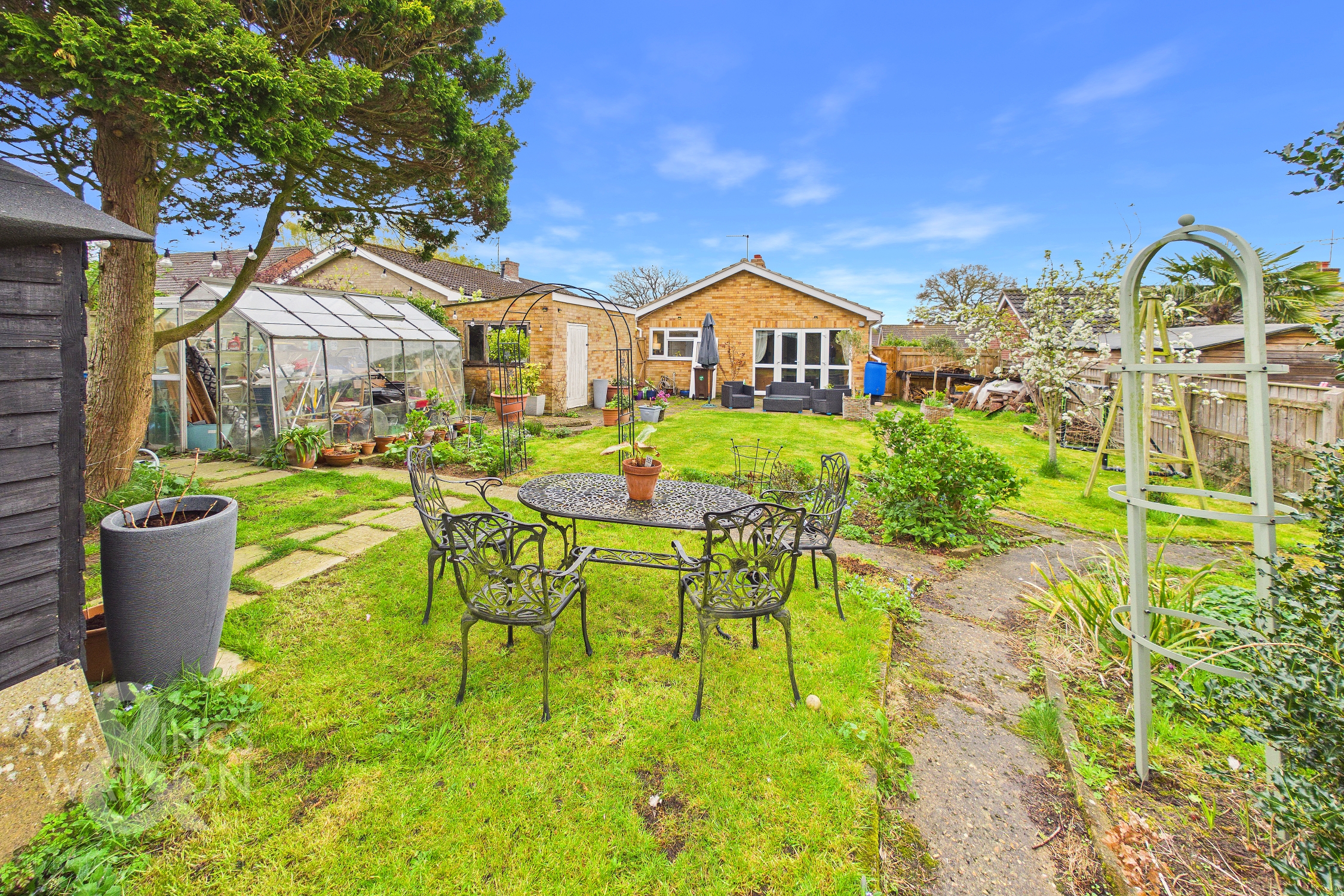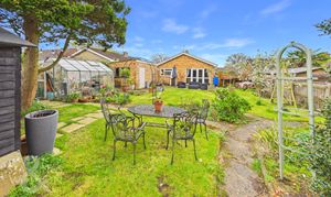 Guide Price £335,000-£350,000. NO CHAIN. This beautifully presented DETACHED BUNGALOW is perfectly positioned in a peaceful CUL-DE-SAC, just moments from local shops and transport links, offering the ultimate blend of convenience and tranquillity. FULLY UPDATED throughout, the property boasts a RECENTLY RE-ROOFED structure, MODERNISED ELECTRICS and PLUMBING, and a contemporary interior finish that immediately impresses. Step inside to discover a generous 19' SITTING ROOM, complete with elegant FRENCH DOORS that open onto the SOUTH FACING REAR GARDEN, creating a seamless connection between indoor and outdoor living. The MODERN FITTED KITCHEN features sleek cabinetry, integrated appliances, and a practical PANTRY STORAGE area, ideal for culinary enthusiasts. Both DOUBLE BEDROOMS are equipped with BUILT-IN WARDROBES, providing ample storage, while the RE-FITTED LUXURY FAMILY BATHROOM offers a stylish and relaxing retreat with premium fixtures and fittings. The updated flooring and tasteful decor throughout ensure this home is ready to move straight into, providing flexible living spaces that suit a variety of lifestyles, whether you are downsizing, seeking single-level living, or looking for a low-maintenance family home. THE GREAT OUTDOORS truly shines with a LARGE SOUTH FACING GARDEN, enclosed by timber panel fencing for privacy and security. A sprawling expanse of lawn is complemented by newly planted borders and mature trees, creating a picturesque and tranquil setting for relaxation or entertaining. The DRIVEWAY provides ample off-road parking and leads to a GARAGE, accessed via an up and over door to the front.