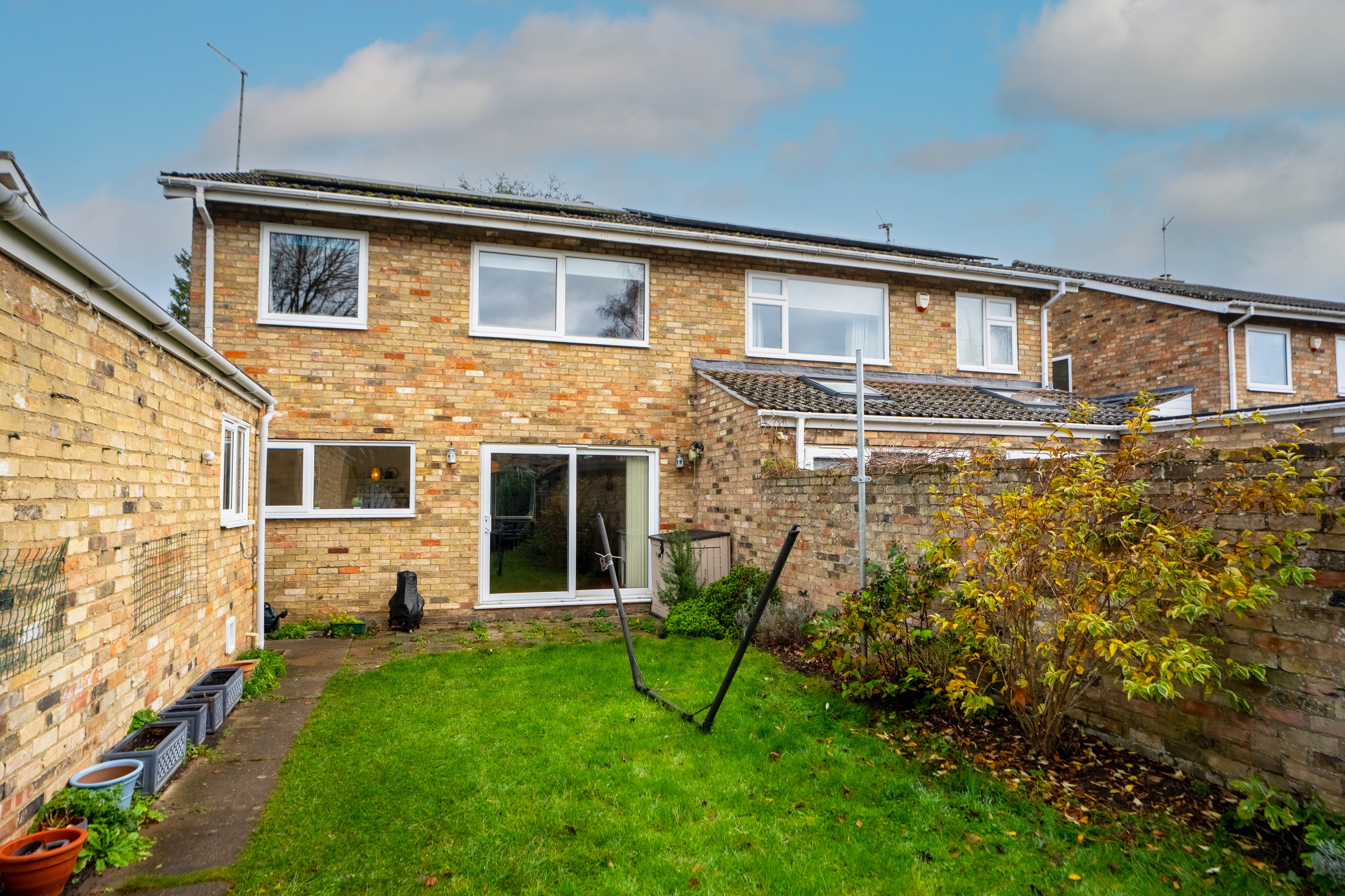 Nestled in a peaceful location within this highly sought-after village, this beautifully presented three-bedroom family home has been thoughtfully updated and well-maintained by its current owners. Offering accommodation arranged over two floors, the property combines modern conveniences with a warm and inviting charm. On the ground floor, a spacious sitting/dining room takes centre stage and opens up into the kitchen, featuring hardwood flooring and windows on two sides that flood the space with natural light. The kitchen has been tastefully modernised with a range of fitted units and integrated appliances and features a lantern skylight providing even more natural light. There is also a separate study/home office room on the ground floor, ideal for home working. Upstairs, the first floor offers three generously sized bedrooms, a family bathroom, all accessed via a spacious landing. Bedrooms one and two feature built-in wardrobes, providing ample storage. The family bathroom boasts a sleek, modern white suite, including a basin set within a vanity unit. An insulated and boarded loft provides additional storage. Outside, the front garden is laid to lawn, positioned just off a communal green that separates the neighbouring houses, creating a pleasant and tranquil outlook. The rear garden is fully enclosed and primarily laid to lawn. Additional features include a garage, driveway parking.