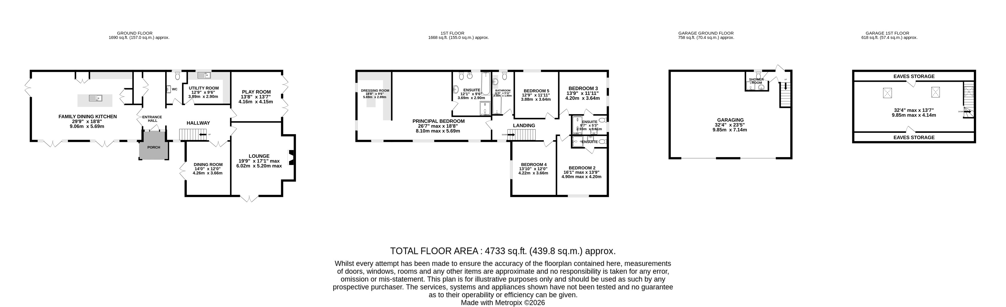 - Spacious principle bedroom suite with bespoke dressing room and en suite bathroom