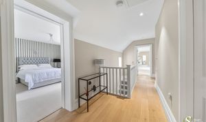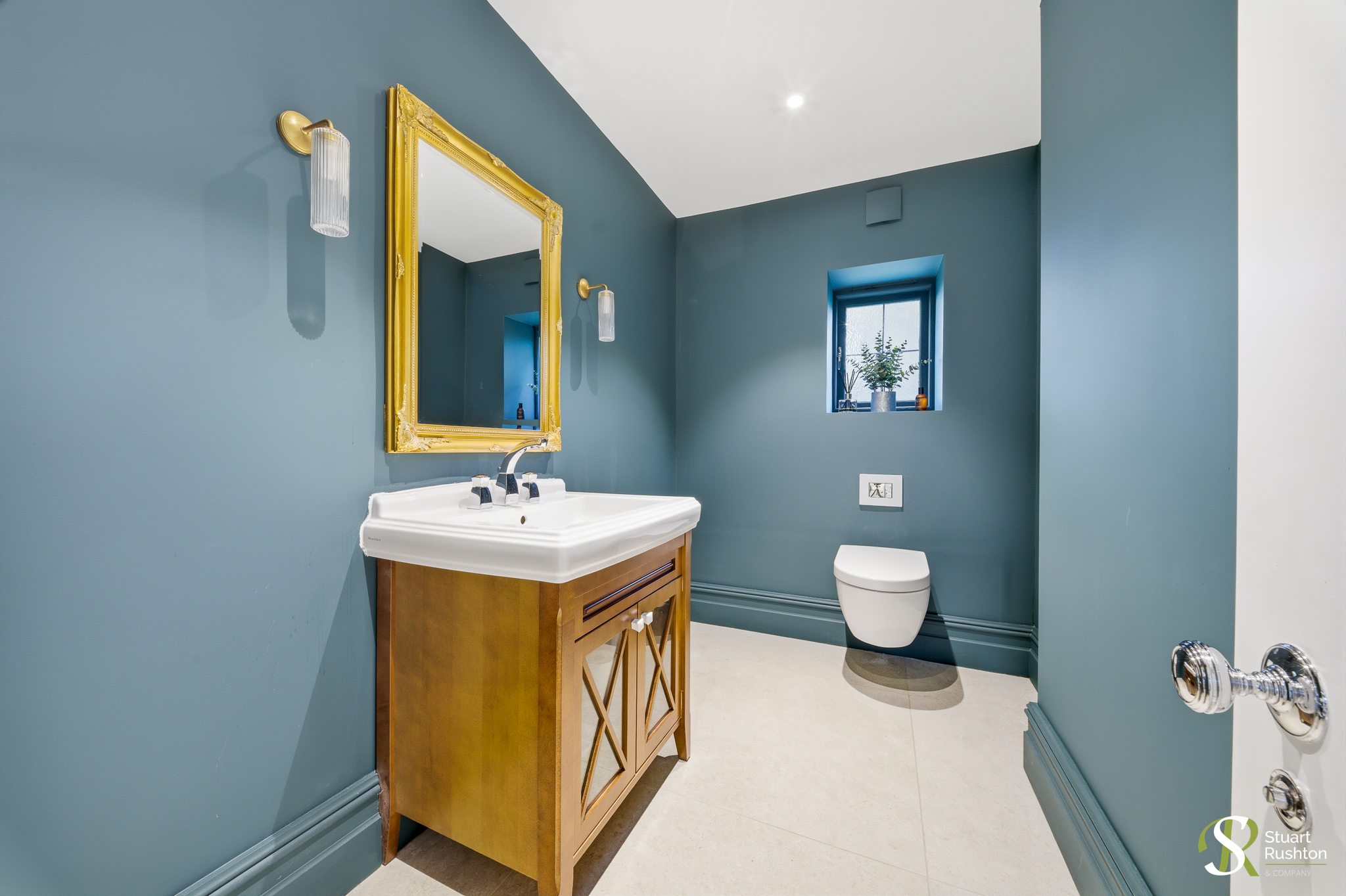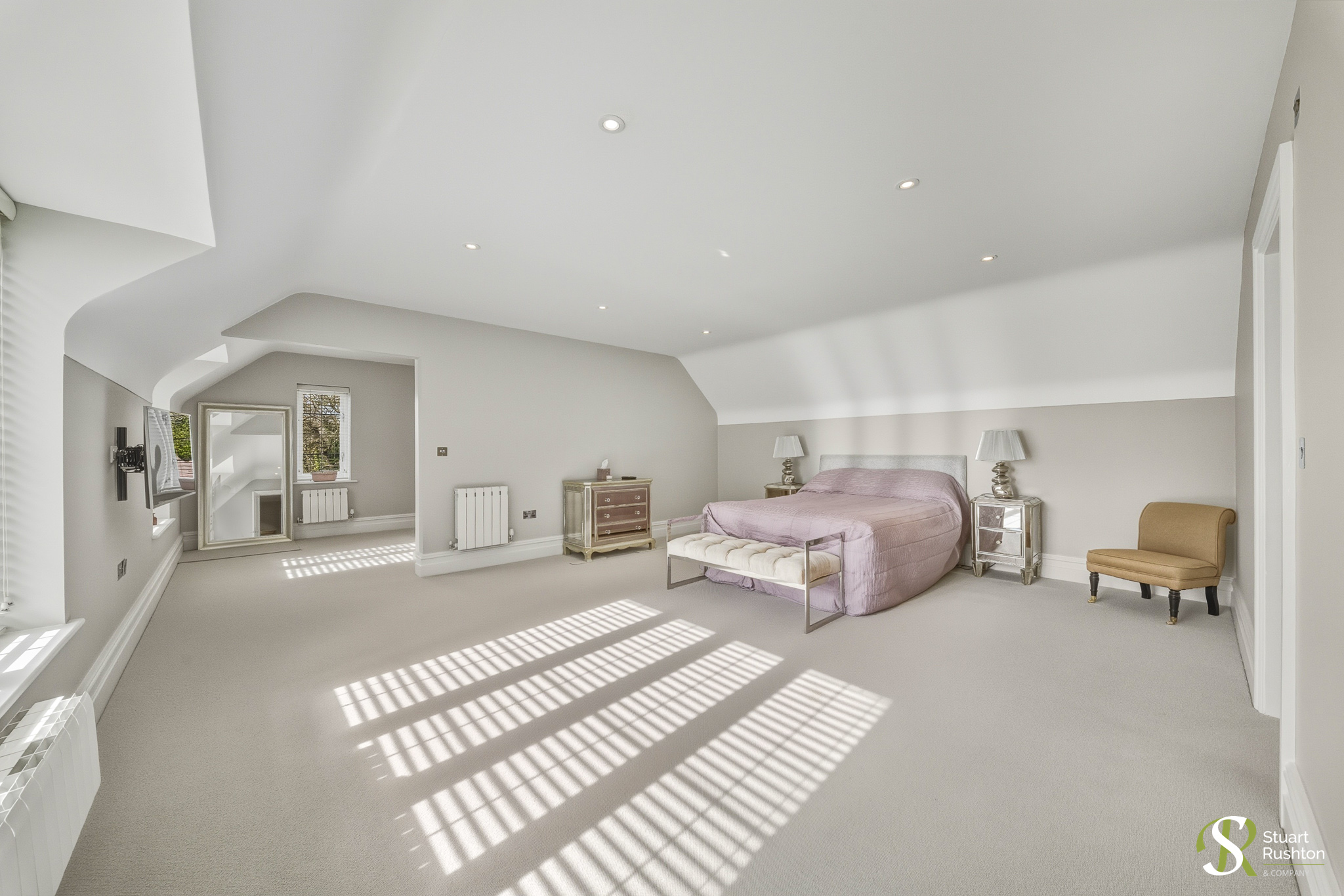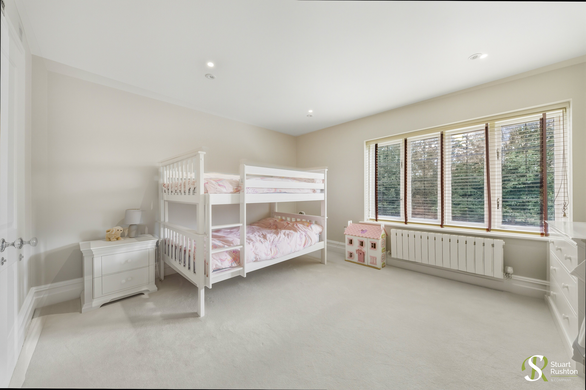 To the first floor there are five generously sized bedrooms and four bathrooms. The principal bedroom suite is particularly impressive in scale and benefits from a newly fitted bespoke dressing room and a luxurious en-suite bathroom. Two further bedrooms enjoy en-suite shower rooms, while the remaining two bedrooms are served by a well-appointed family bathroom.