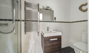 - Open plan kitchen/living/dining space with beautifully fitted hand painted, bespoke kitchen