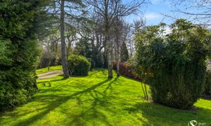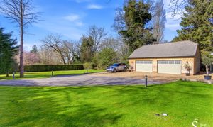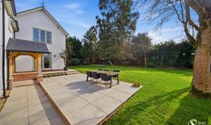 The gardens extend to approximately 0.9 acres and wrap around the property, with the majority situated to the front and side of the house. Two large stone-flagged patio terraces enjoy a south-facing aspect, providing ideal spaces for outdoor entertaining and relaxation.