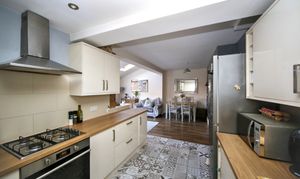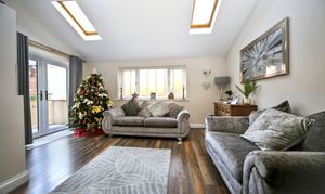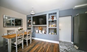 To the rear, the impressive open-plan kitchen, dining and family room forms the heart of the home, featuring a stylish media wall and a Velux window within the extension, allowing an abundance of natural light. Double doors open out onto the rear garden, seamlessly connecting indoor and outdoor living.