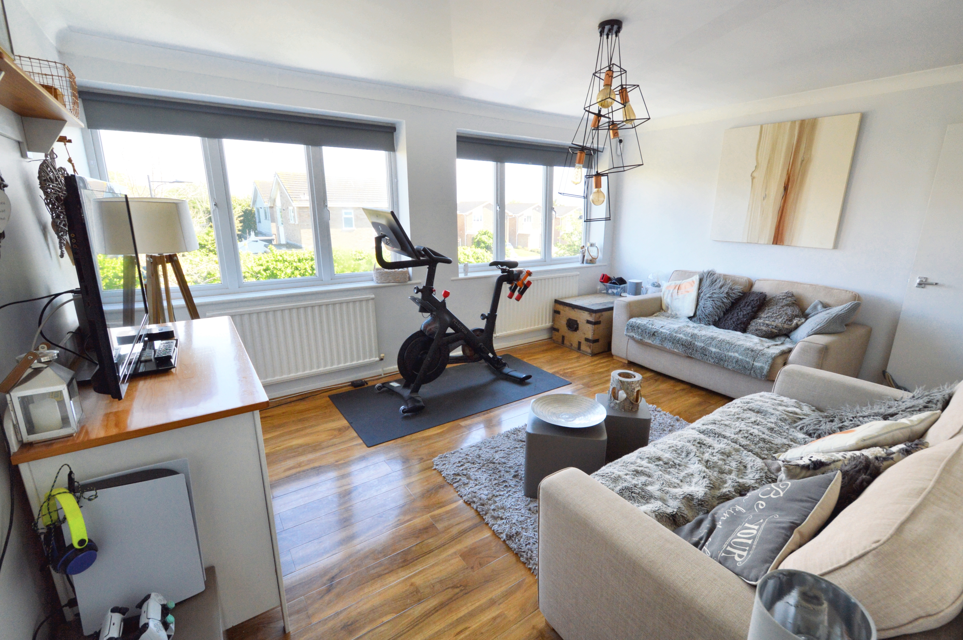 Double glazed sliding patio doors to rear garden, additional double glazed window to rear, radiator, laminate wood flooring, coved ceiling.